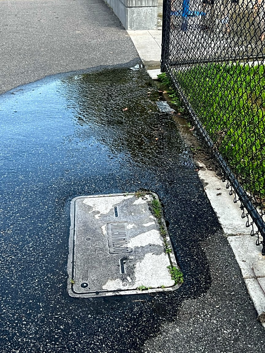 225 Heath St, Mission Hill, Ma, 02130Water bubbling out of street, coming from under metal square cover