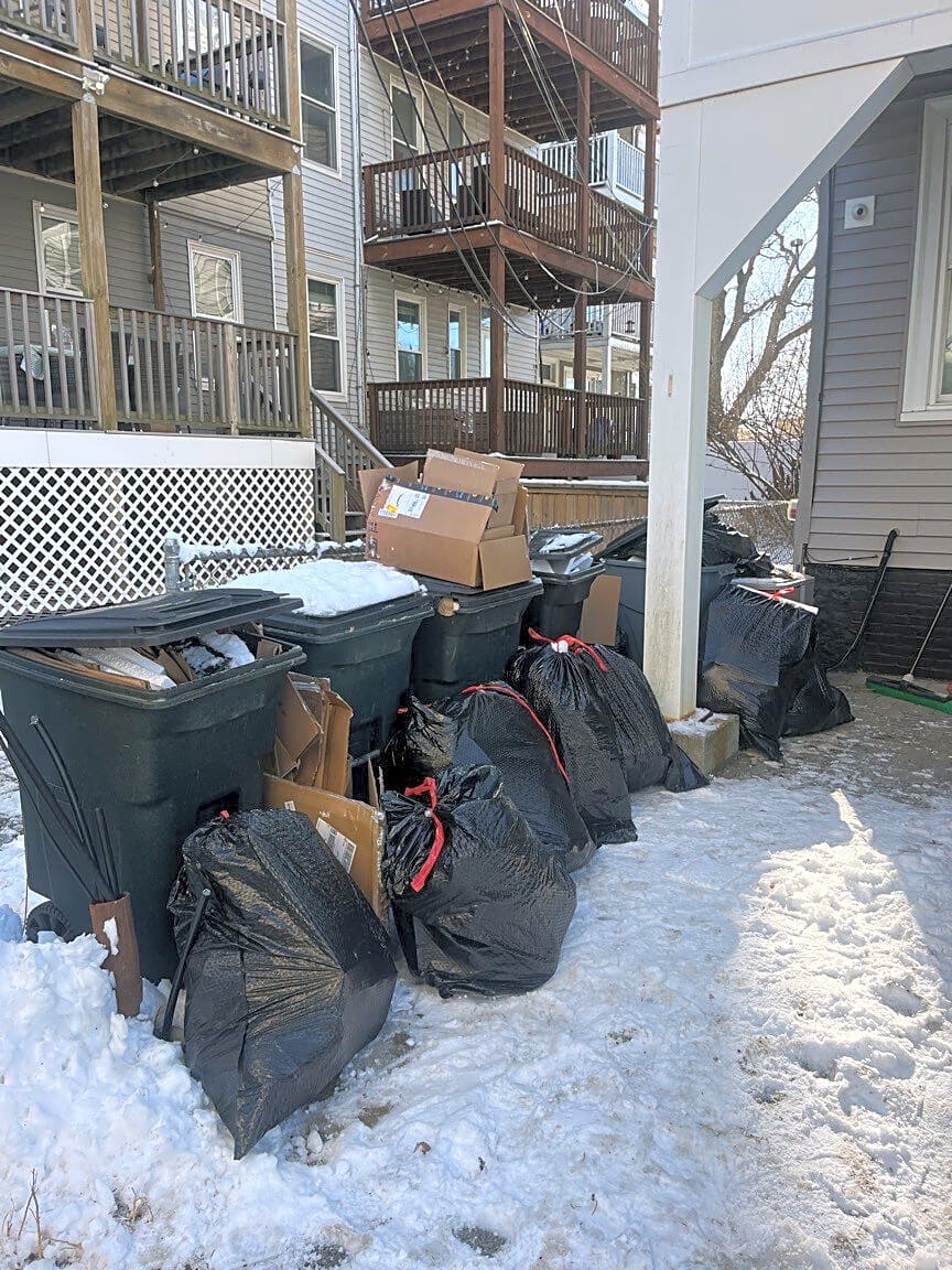 397 Rk St, South Boston, Ma, 02127Our trash has not been picked up in two weeks. We filed a complaint yesterday and were told they won’t pick it up because it’s overflowing. It’s overflowing because our trash has not been picked up in two weeks and we only have 5 barrels. We cannot consolidate the trash more than this and we have zero places to put the trash between now and next Tuesday (our pick up day). We really need someone to come pick up our trash. We cannot solve the issue unless this trash is removed from our property. We only have 5 bins and they are all completely full.