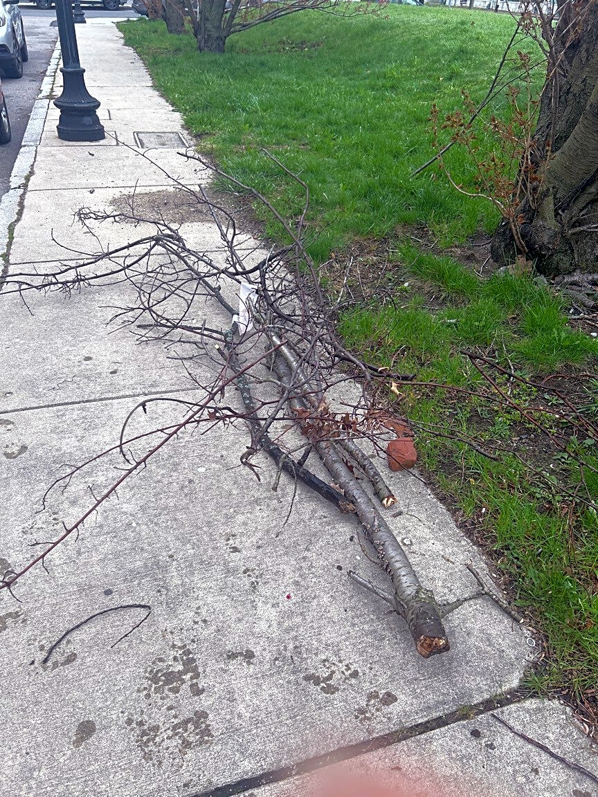 Intersection Of Spring Park Ave And Chestnut Ave, Jamaica Plain, MaTree branch on wires. Seems like it could get bad? Also a wire is sagging down almost to pedestrian head height. **** notified eversource at 11:49am | Case (SR) Type: [Wires: Downed/Low Hanging] Referred To: [LOW HANGING/DOWNED WIRE(S)]