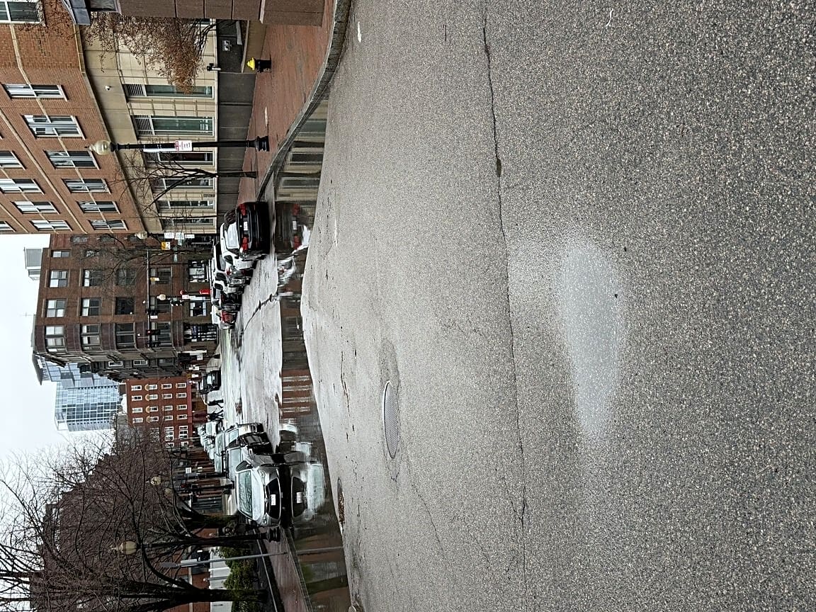 379 Commercial St, Boston, Ma, 0210940/50 Battery St. AKA Burroughs Wharf Street both street drains backing up and draining slowly. Picture from 3-16-26, These drains are on Battery St. between Lincoln Wharf and Battery Wharf. Thank you | Case (SR) Type: [Miscellaneous] Referred To: [BWSC (All Cases)]