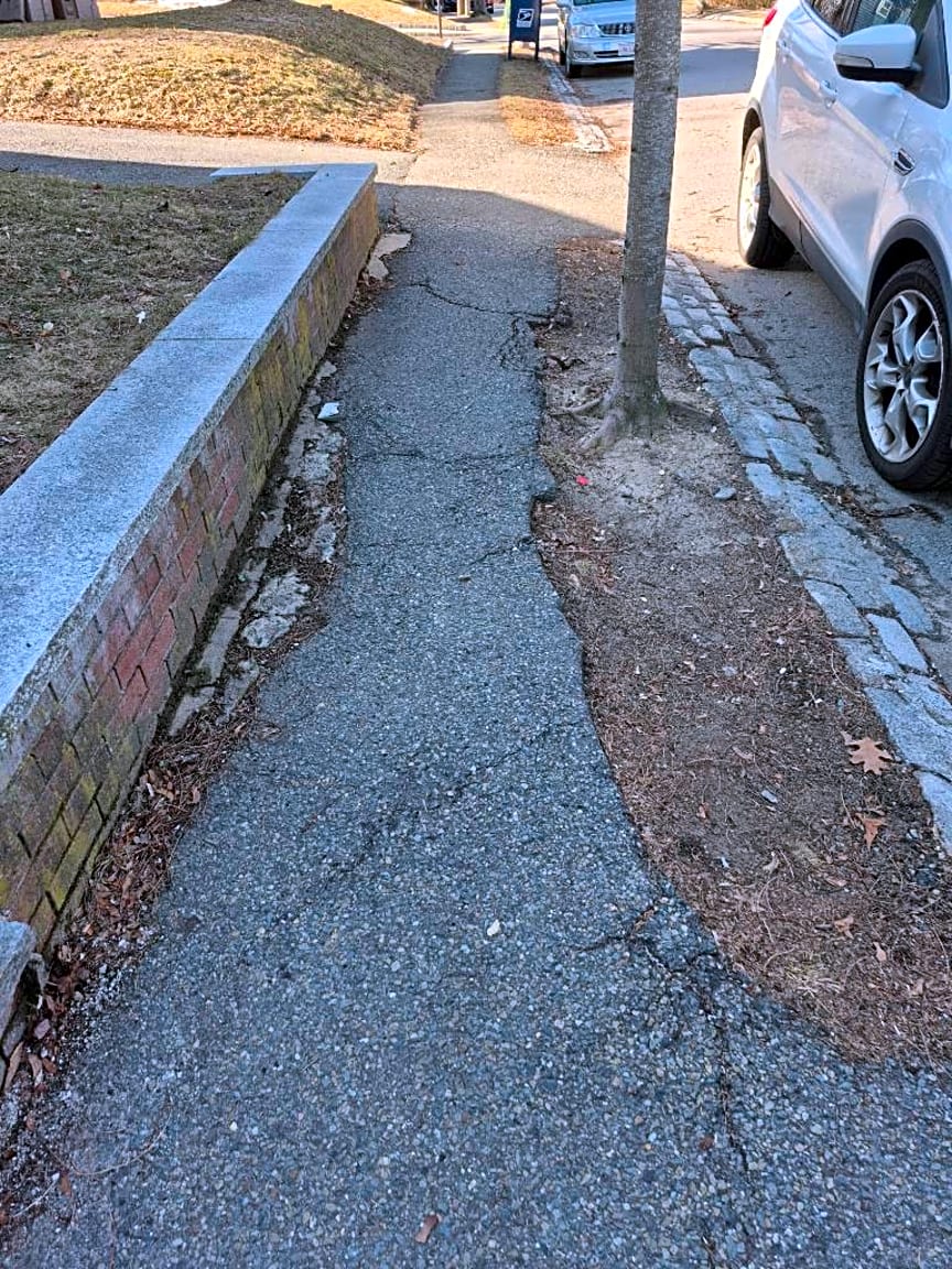56 Dwinell St, West Roxbury, Ma, 02132Constituent is requesting repairs to be made to their sidewalk which is being lifted by tree roots and is a hazard to people with disabilities in the area. | Sidewalk material: [Asphalt]
