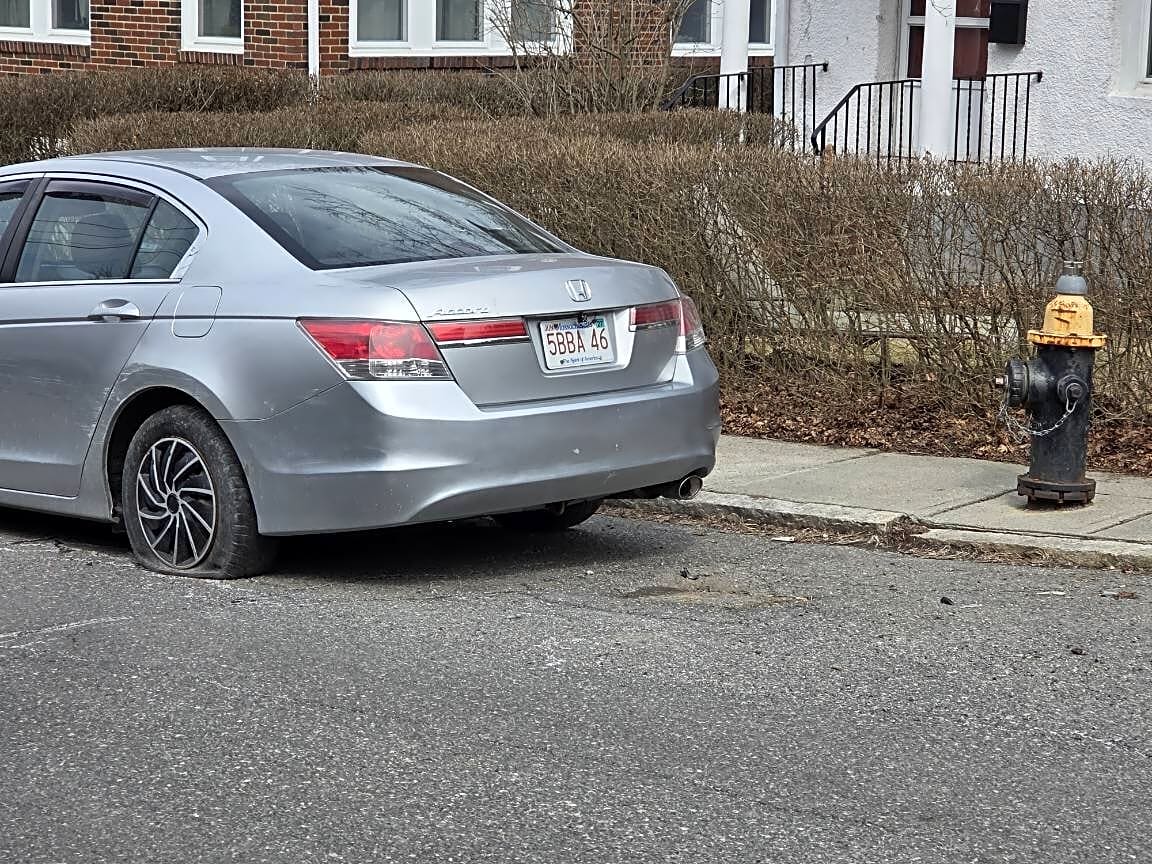25 Hayes Rd, Roslindale, Ma, 02131Abandoned car. Has not moved for 2+weeks. Parked in front of fire hydrant. Two flat tires. Makes narrow street and driveways difficult to navigate. Waited for snow to melt to see if owner would move. Car has not moved.