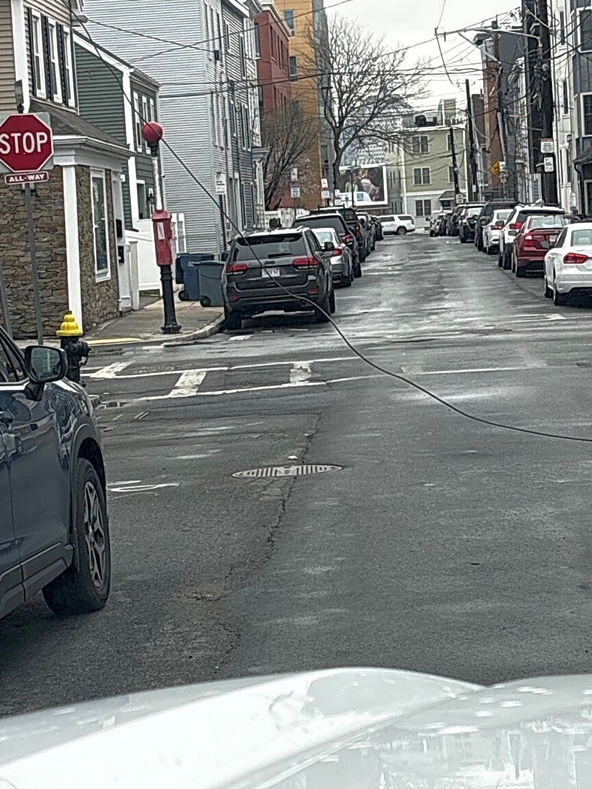 1 Cottage St, South Boston, Ma, 02127Wire blocking the street. Called eversource at 8:41am | Case (SR) Type: [Wires: Downed/Low Hanging] Referred To: [LOW HANGING/DOWNED WIRE(S)]