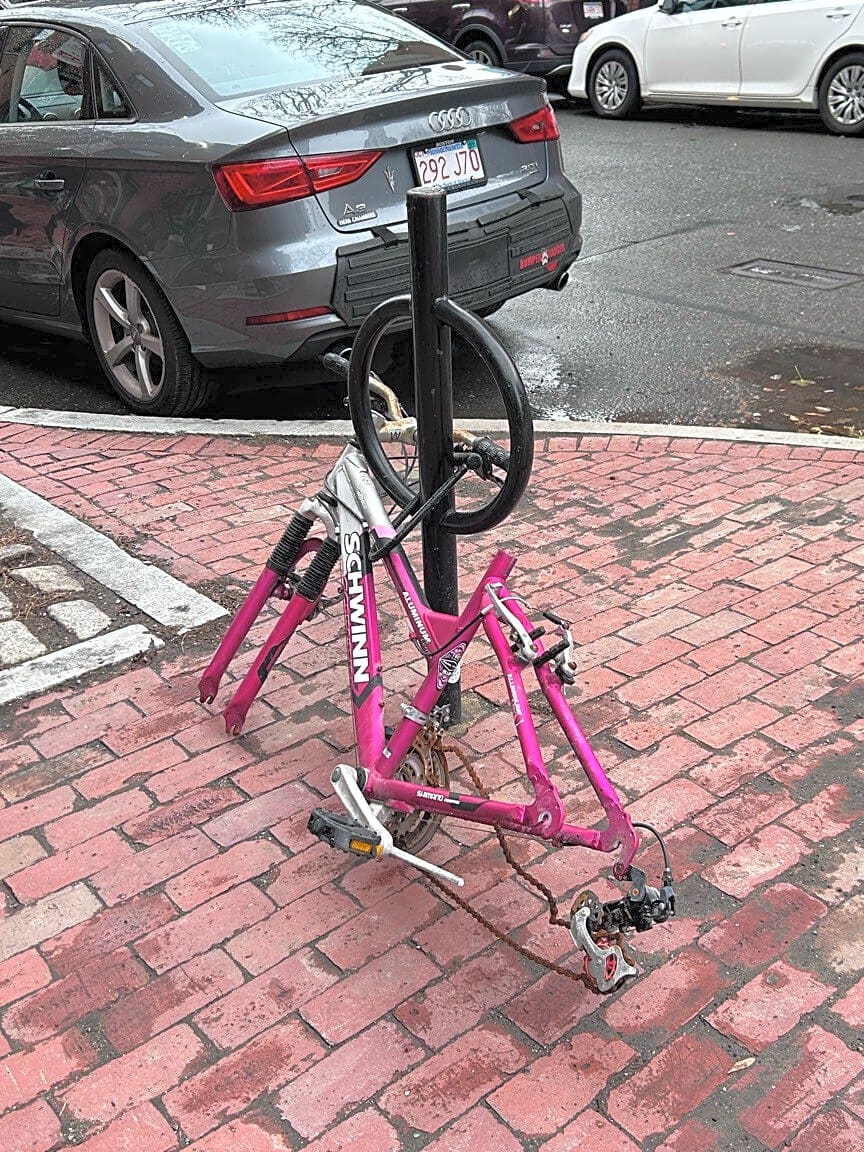 96 W Concord St, Roxbury, Ma, 02118Abandoned bike at corner of Shawmut Avenue and W Concord in the South End