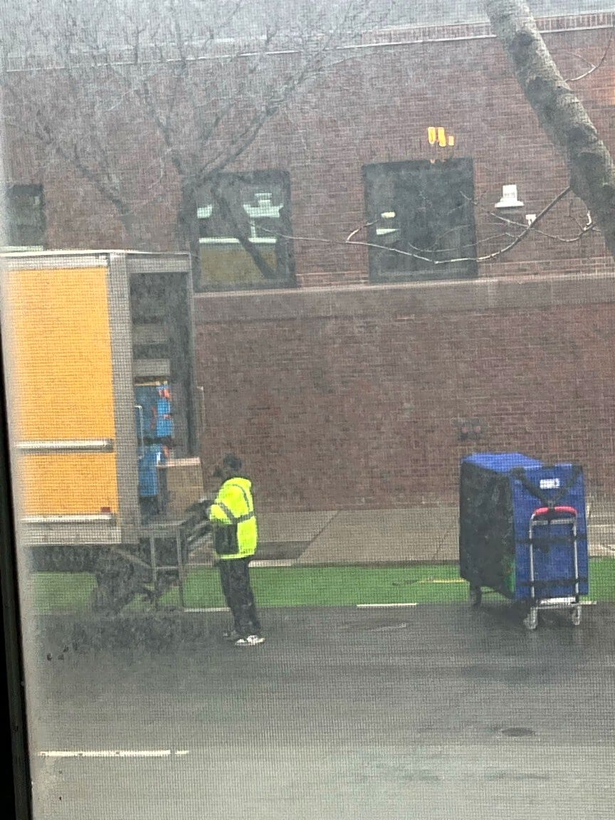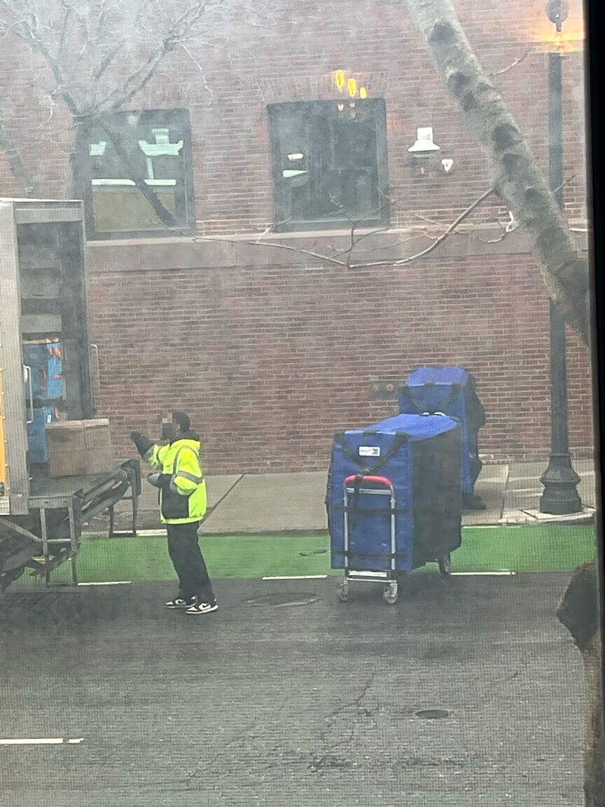 Intersection Of Holden Ct And Commercial St, Boston, MaThey are SO LOUD!!!!! Why are they still here!!!! Illegally parked and screaming!!! THIS IS NOT AMAZON STREET. What is happening!! I don’t understand why this is STILL GOING ON?! It’s NO parking - it’s NOT COMPLICATED. Giant carts on the sidewalk, bike path, street. City of Boston - why!!!!