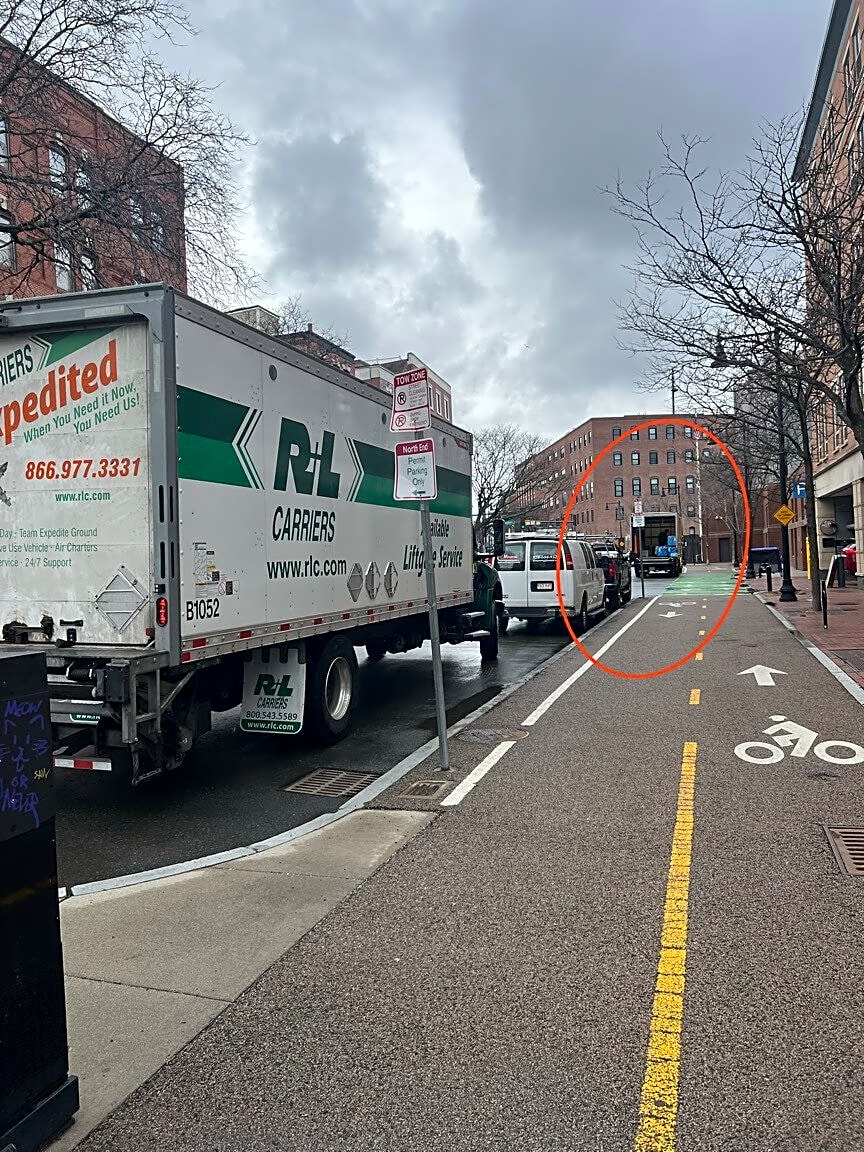 Intersection Of Holden Ct And Commercial St, Boston, MaAll trucks should be able to come in and out of that spot all day. Amazon is always illegally parked there and now this truck is forced to take two residential spots. Why is the city allowing this?