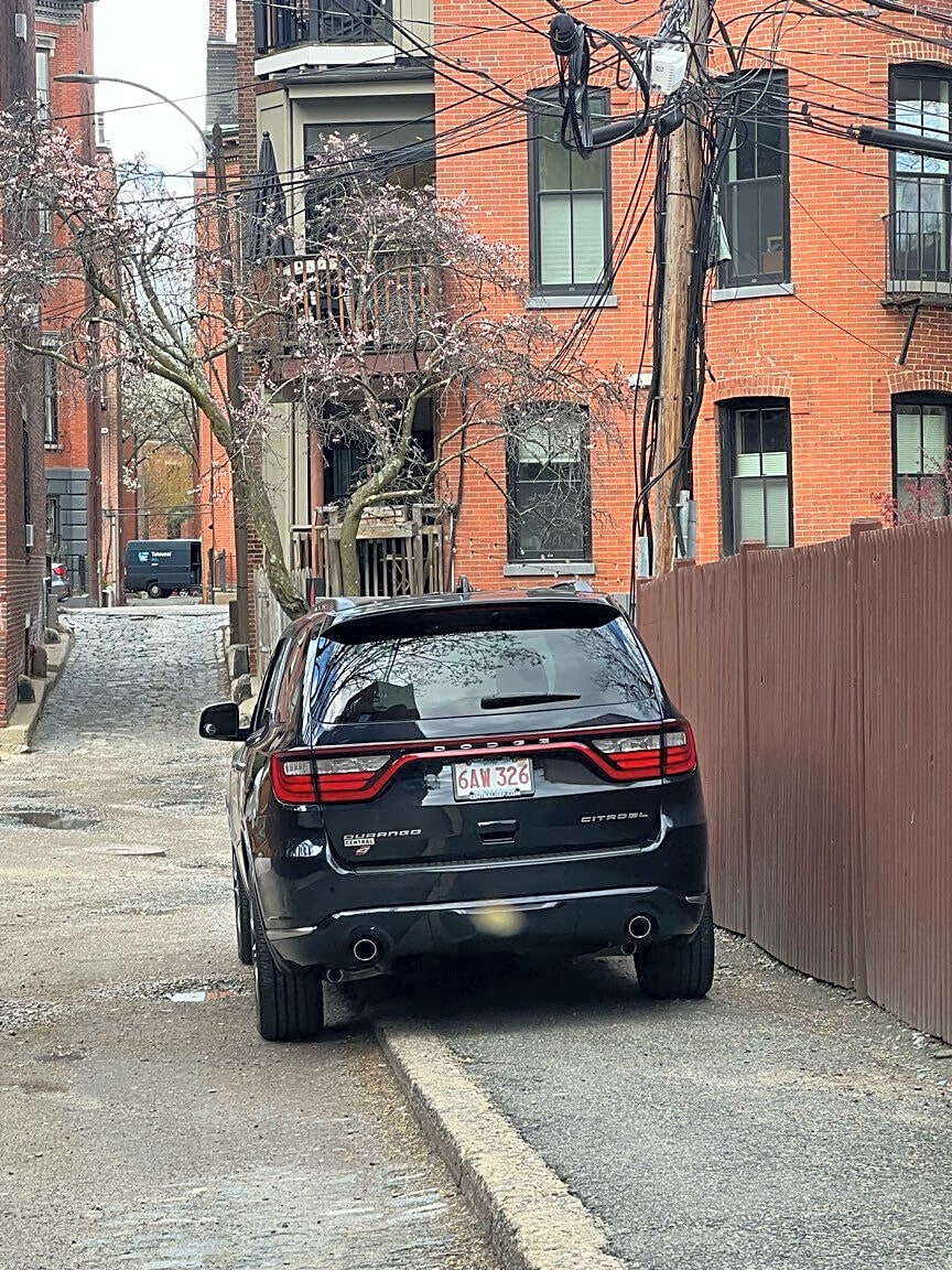 38 Concord Sq, Roxbury, Ma, 02118Car parked illegally in alley. Alley connecting Worcester Street and Concord Square.