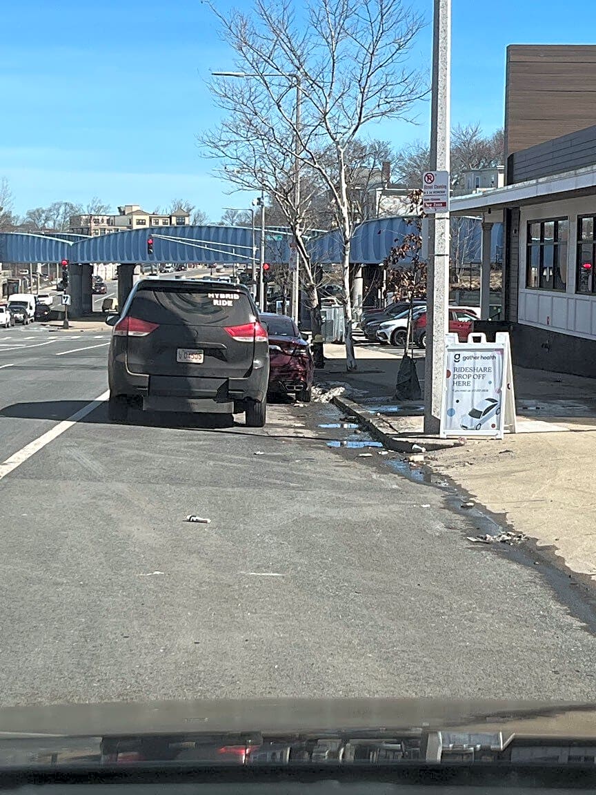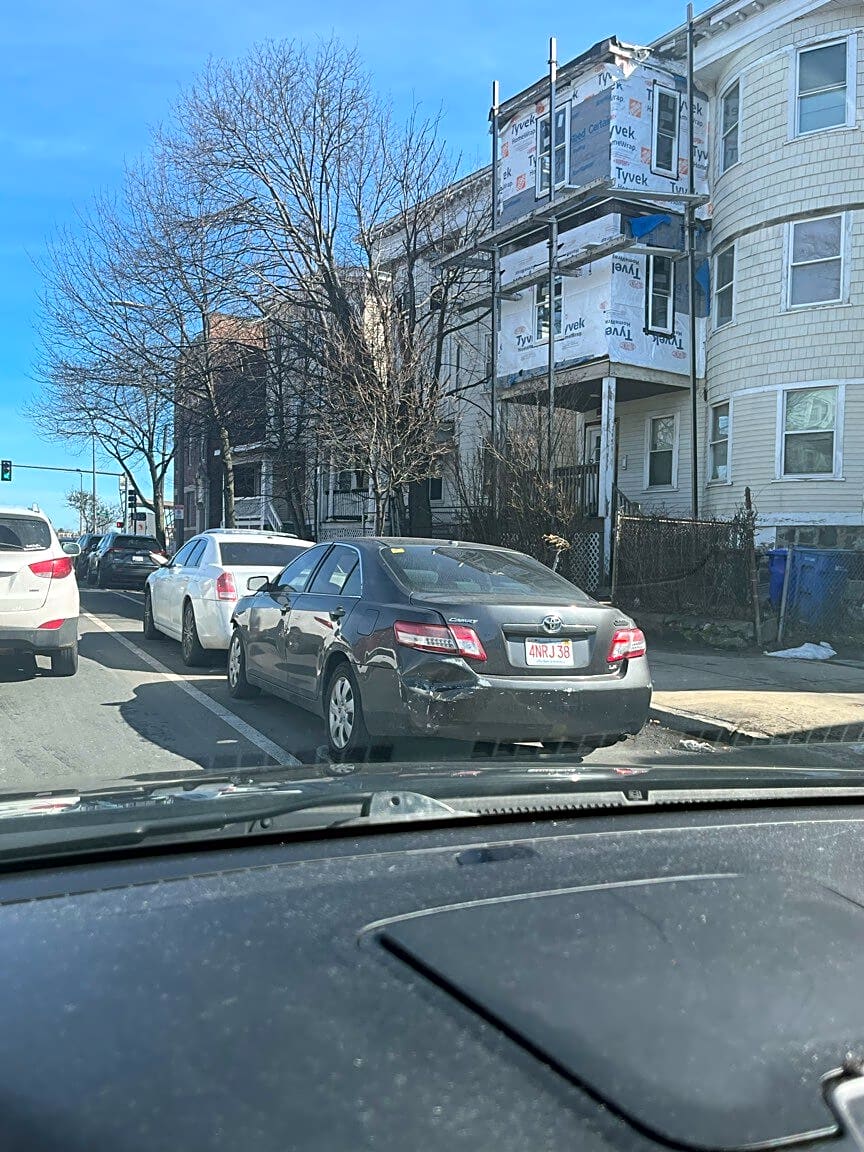 413 419 Columbia Rd, Dorchester, Ma, 02125Gray Mazda suv blocking bike lane.