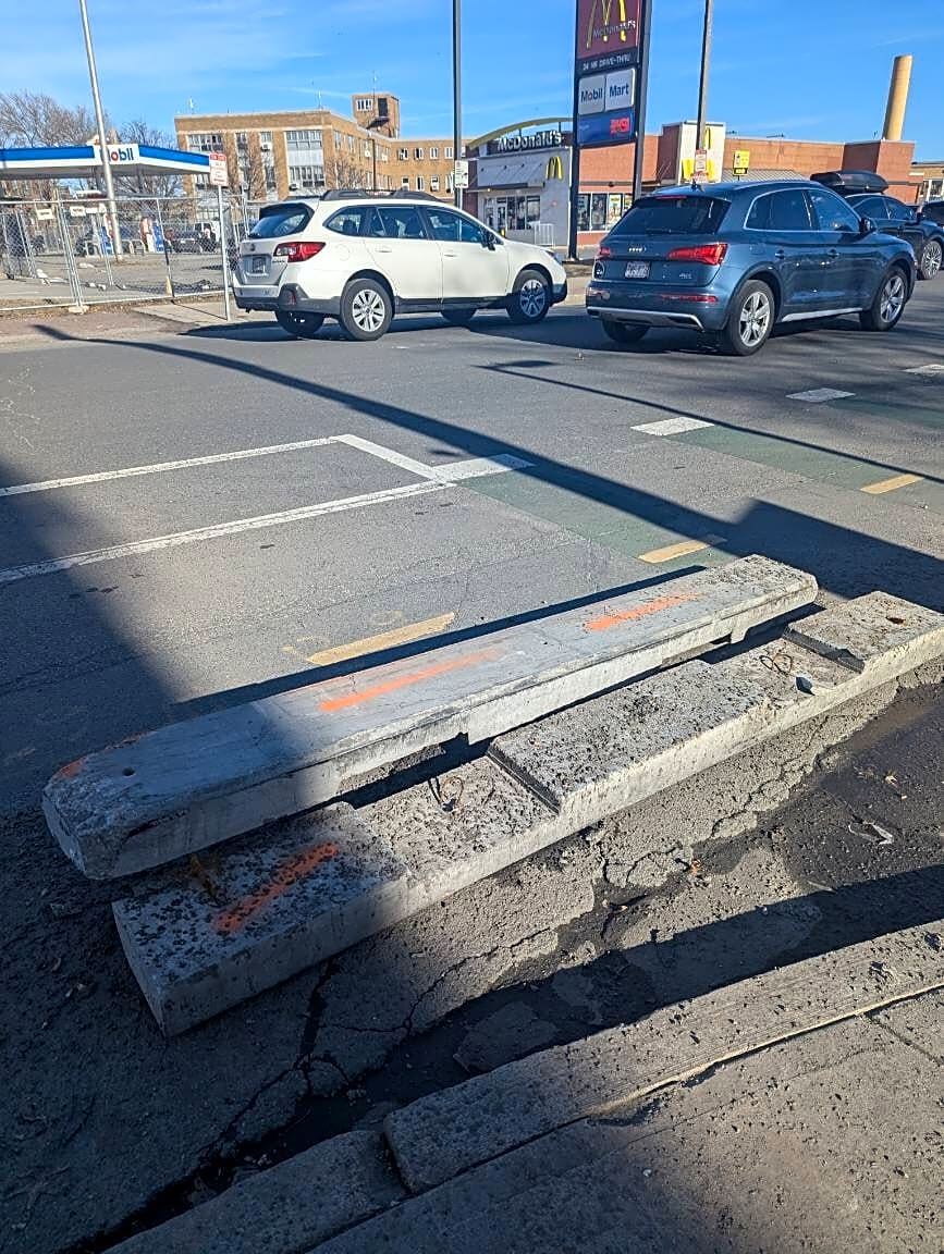 895 899 Massachusetts Ave, Roxbury, Ma, 02119Bike lane curbing displaced and creating hazardous riding