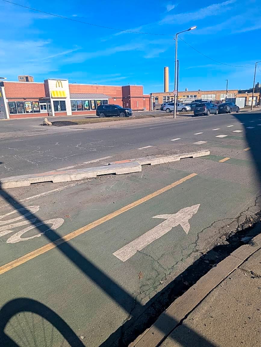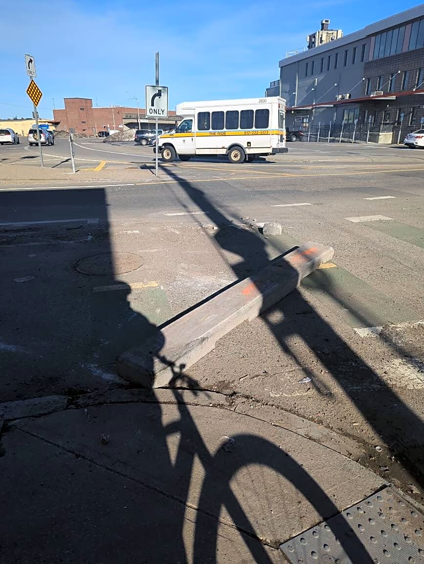 Intersection Of Pompeii St And Theodore A Glynn Way And Massachusetts Ave, Roxbury, MaBike lane curbing dislocated, creating hazardous riding