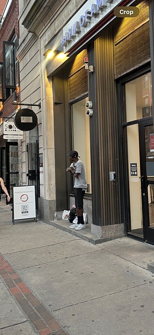 264 266 Hanover St, Boston, Ma, 02113Man begging outside a Hanover Street Bank of America in North End | Case (SR) Type: [BPD: Quality of Life] Referred To: [POLICE: AREA A-1]