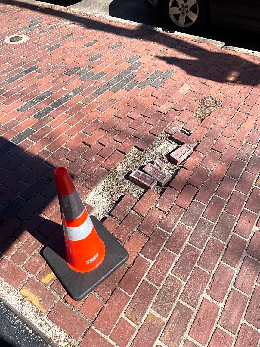 220 230 Commercial St, Boston, Ma, 02109Good Morning - A stretch of sidewalk outside 220 Commercial Street in the North End has become increasingly torn up, now with a large hole in the sidewalk where bricks are missing, as well as several other smaller holes. Someone has now placed a traffic cone nearby, as this really could be a hazardous hold to step in for an elderly person, etc. The displaced bricks are scattered about the sidewalk, and with upcoming summer festivals, parades, and sports events, it's only a matter of time before these bricks become projectiles. Could this please be added to your list of side walk repairs ASAP. This began with one missing brick in January, and over a very short space of time has expanded to entire missing sections as you can see in the attached photos. Thank you for looking into this.