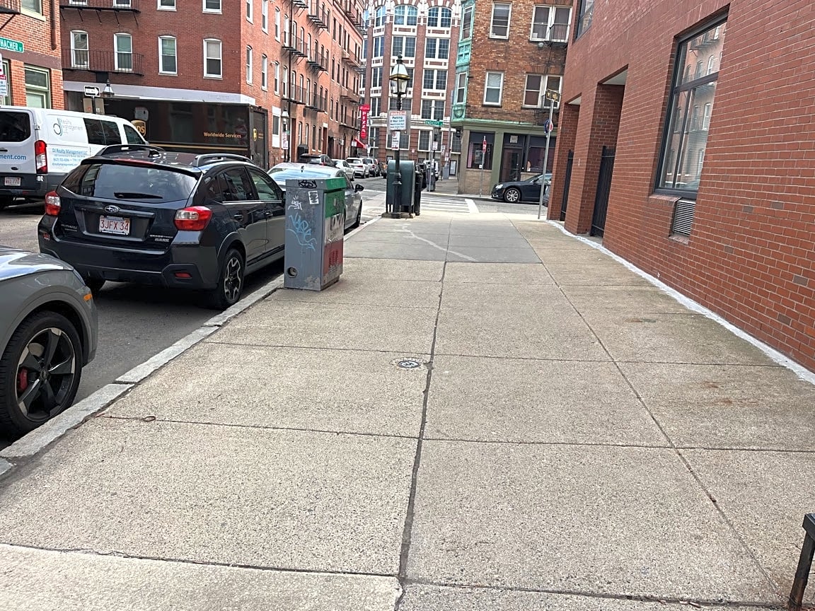 Intersection Of Lynn St And Thacher Ct And Thacher St, Boston, MaPlease install bike racks here. This is one of the widest (and unused) sidewalks in the entire North End. If I had access to a bike rack, I could bike daily. But until then, it’s not feasible for me to carry my bike down 5 stories every time I ride it. The neighborhood has no bike racks and the sidewalks are particularly narrow, so people don’t have any where to park their bikes. Please consider this request