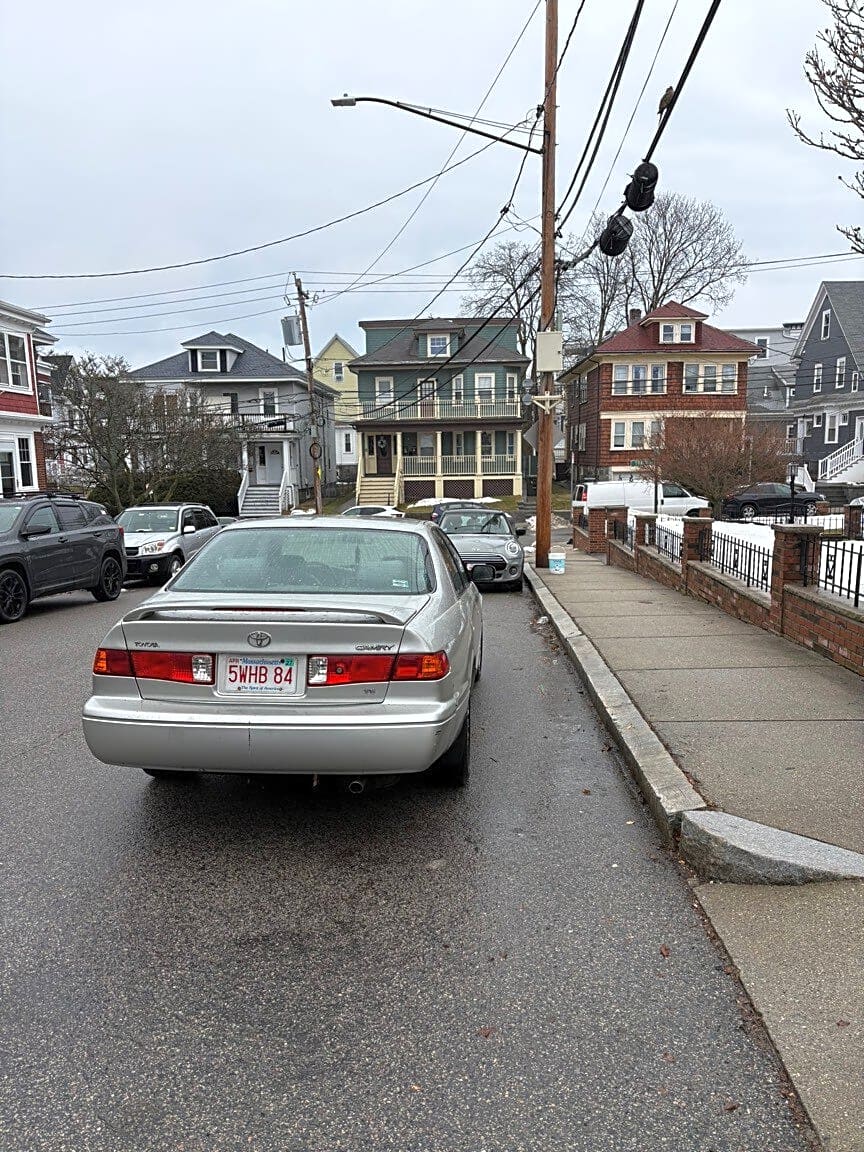 9 11 Rosselerin Rd, Dorchester, Ma, 02122Car park 2 feet off of sidewalk - back of the car into driveway - driveway across the street not usable.