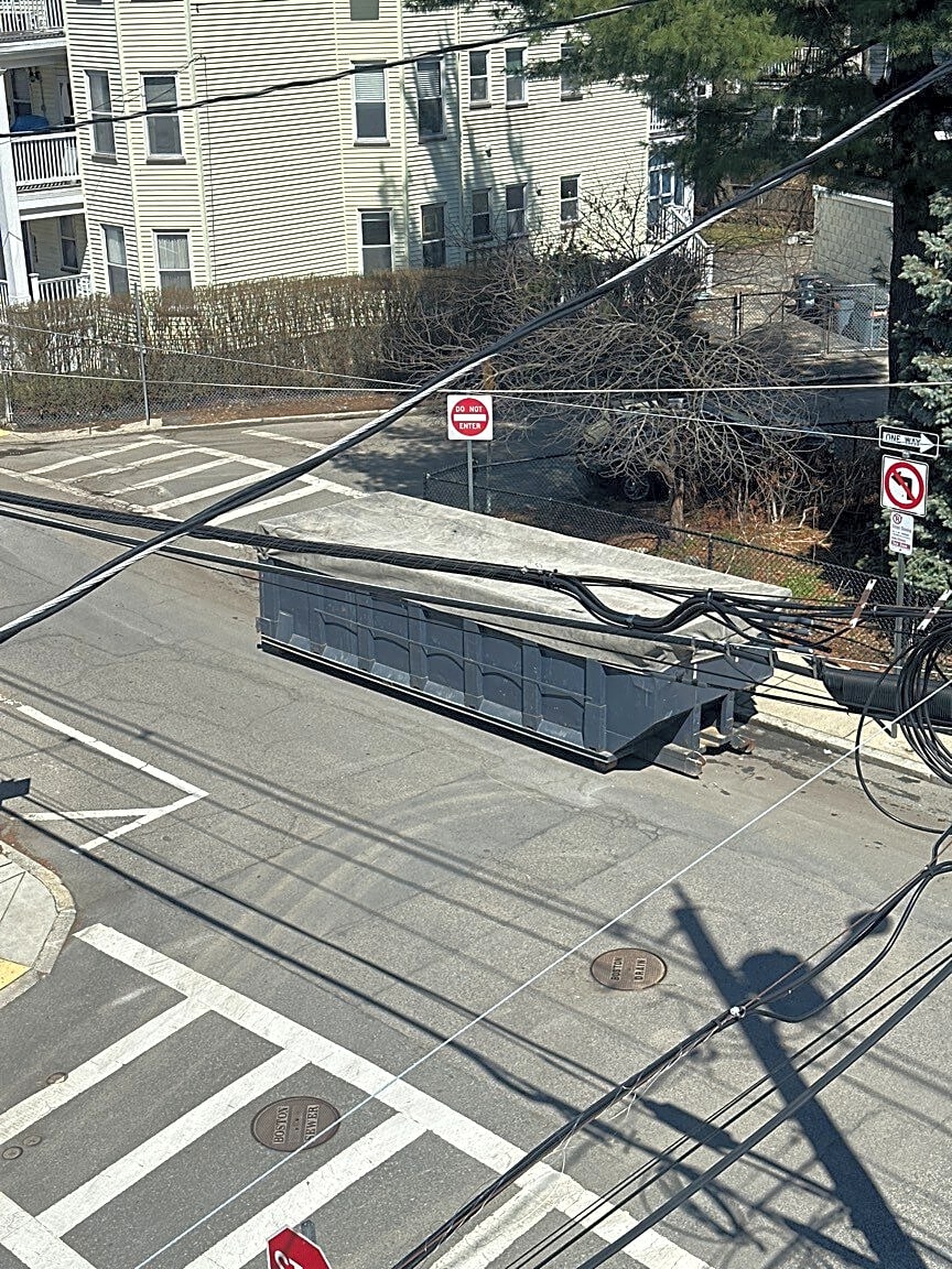 Intersection Of Stedman St And Williams St, Jamaica Plain, MaRoll-off dumpster with no permit. Corner of Williams and Dungraven