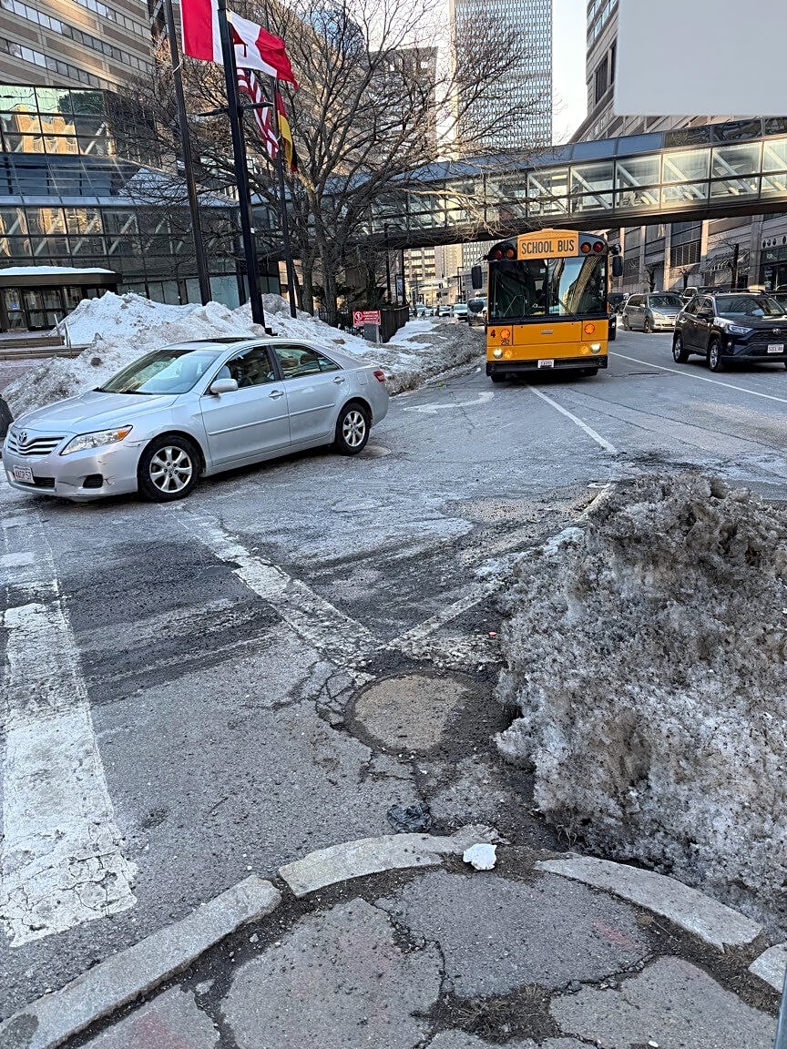 Intersection Of Dartmouth St And Stuart St, Boston, MaRight lane of Stuart street not cleared of snow from I90 exit to Dartmouth st