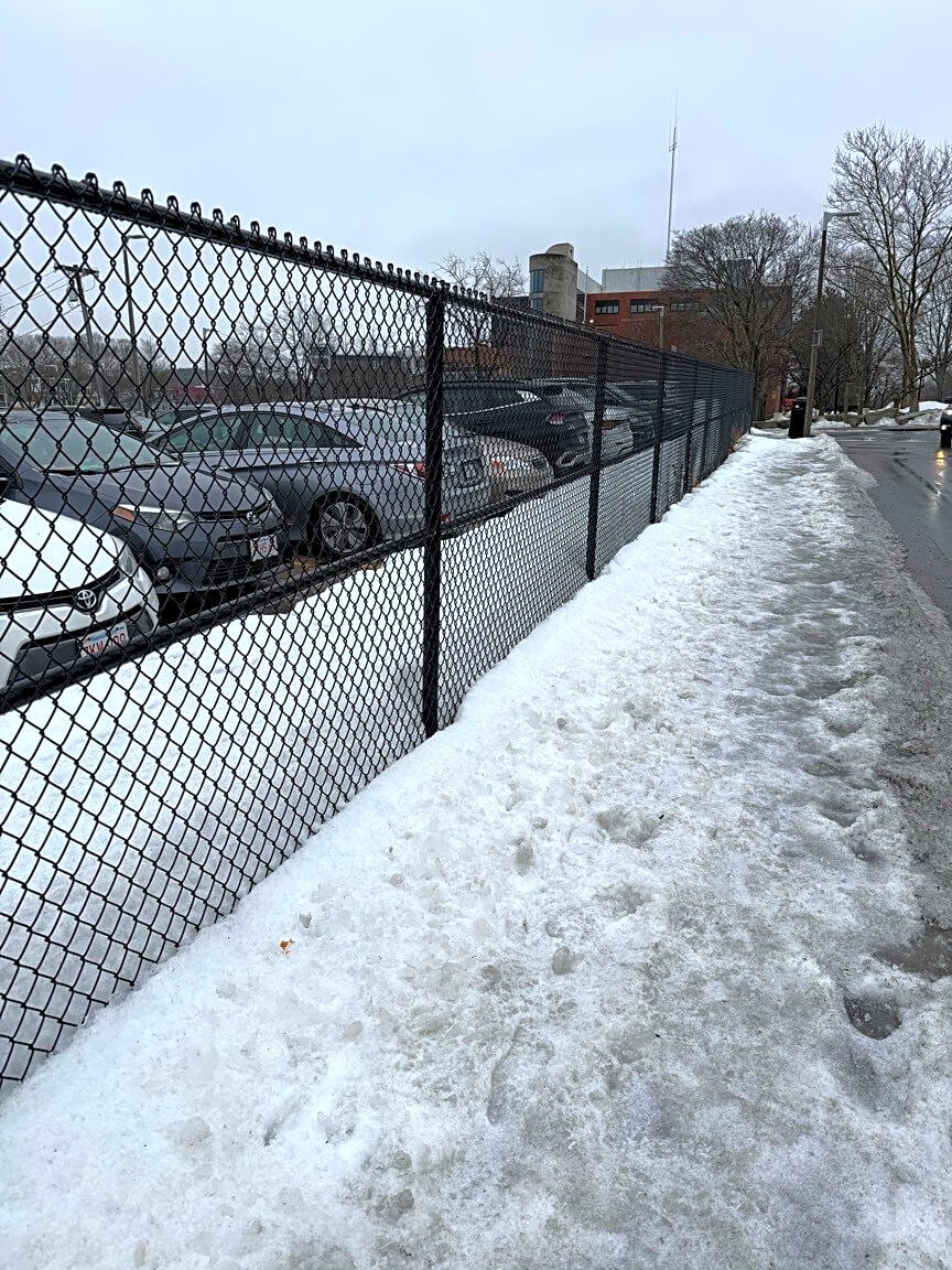 Intersection Of Williams St And Amory St, Jamaica Plain, MaEnglish high school sidewalk still covered in snow. Dangerous. We are unable to access LS daycare without having to cross through the middle of the street without a sidewalk.