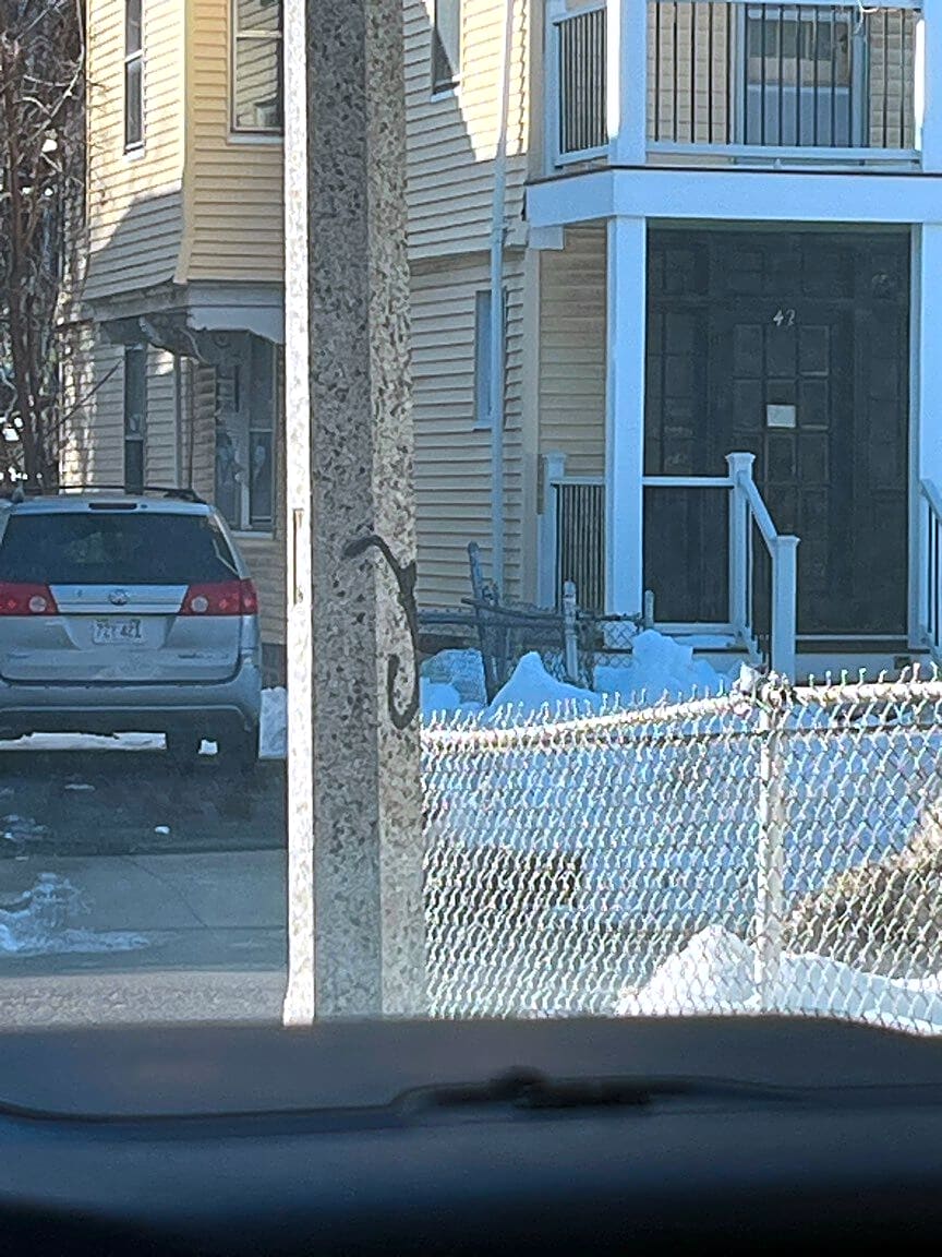 6 Hartford St, Dorchester, Ma, 02125Junk scooter attached to pole in front of 6 Hartford Street