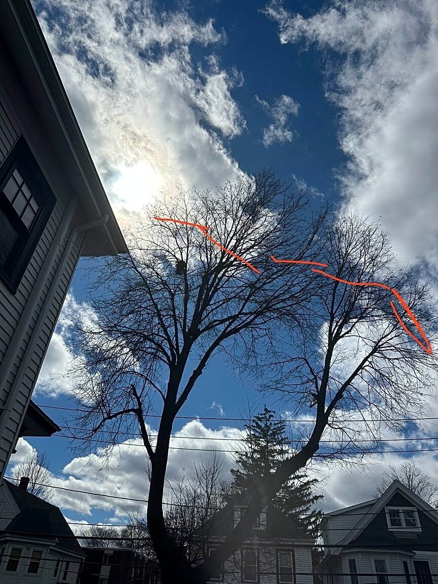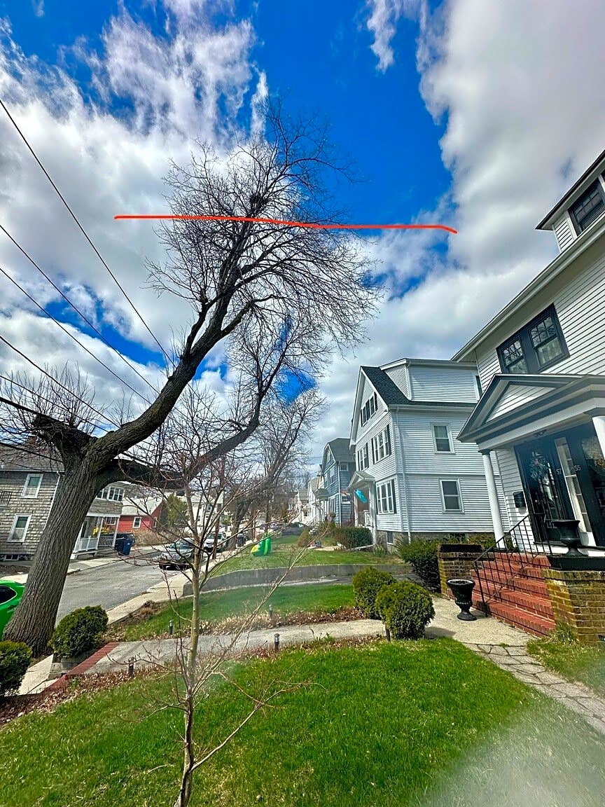 55-57 Willow St, Boston, MA 02132City tree has gown heavily into my yard. Huge Branches falling everyday and dead branches have smashed plants and lighting. I’d like to prune it down 12 ft. I have attached pics with red lines showing where I would like to prune. I’m happy to pay for the pruning myself but want to make sure it’s ok and that I can proceed. Thank you.