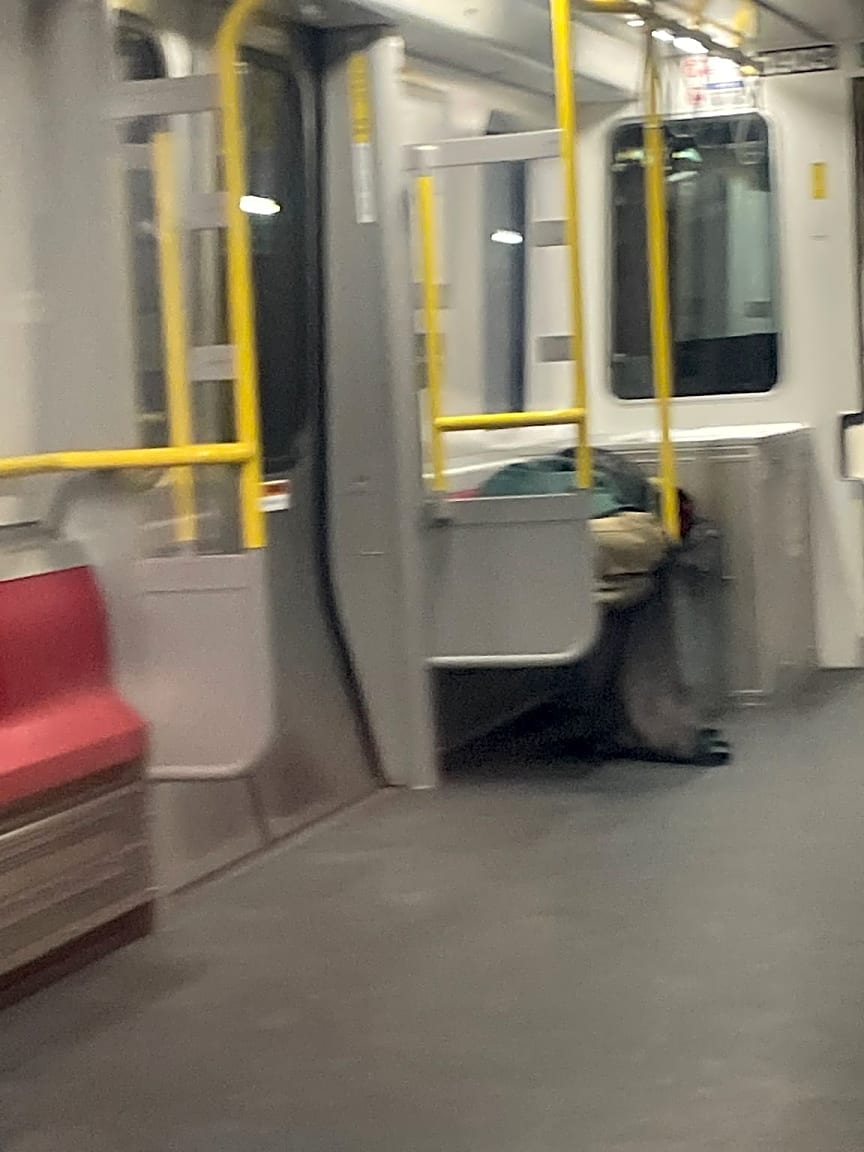 Homeless person sleeping across multiple seats on the Red Line, carriage #1903 | Case (SR) Type: [MBTA] Referred To: [MBTA]