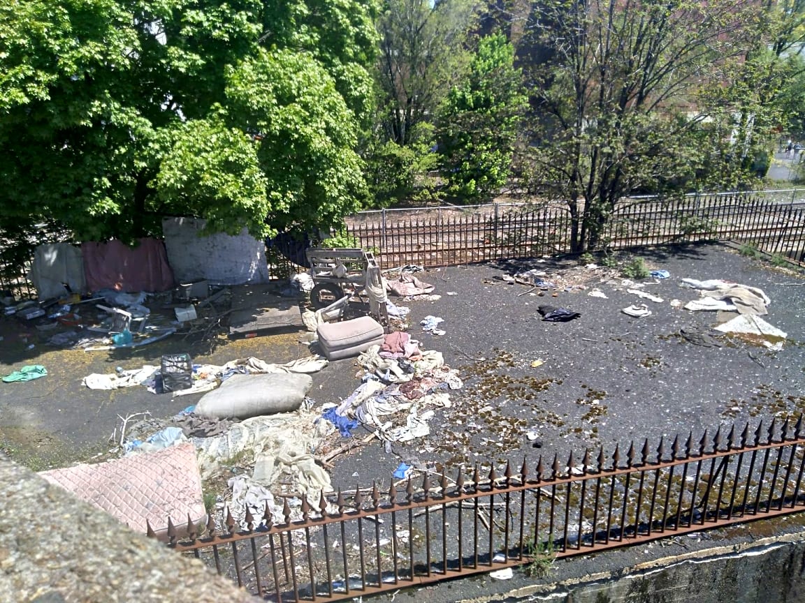 690 Dorchester Ave, South Boston, Ma, 02127Abandoned homeless camp on top of the Red Line tunnel portal next to Von Hillern Street.