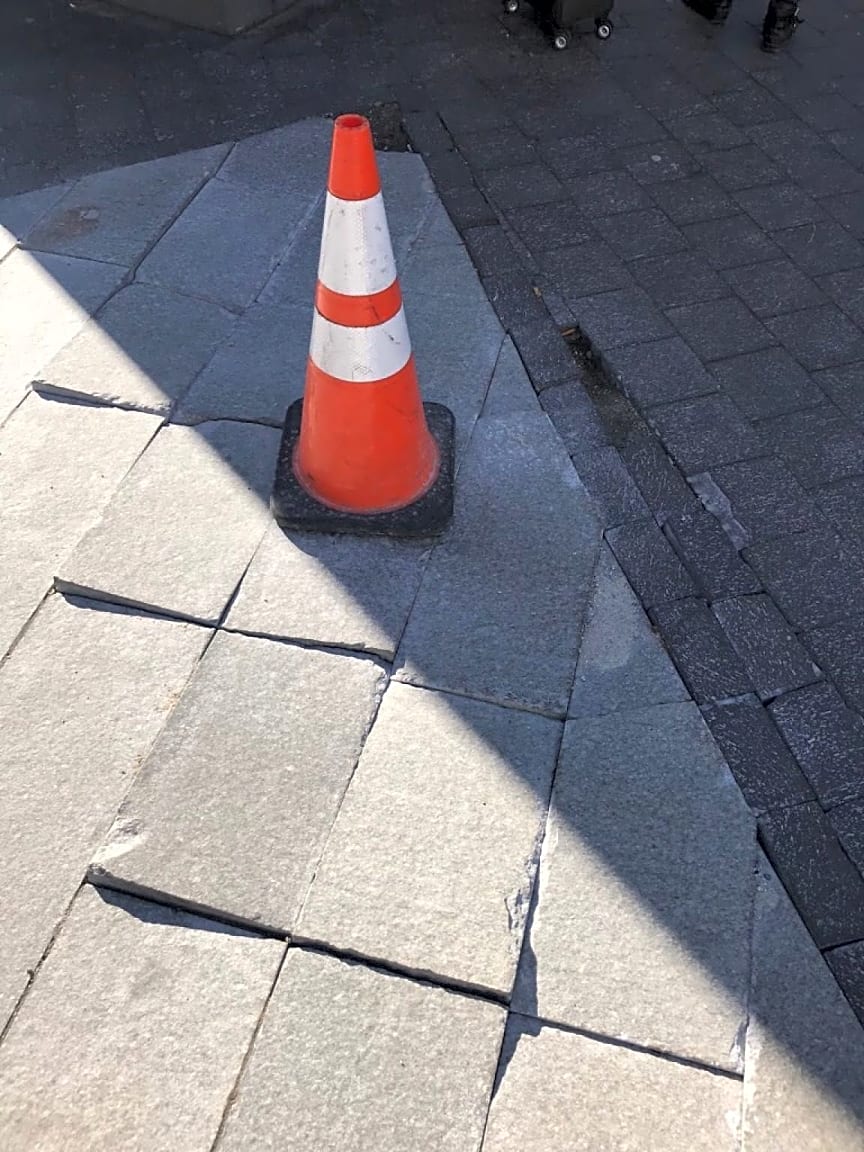Intersection Of Summer St And Interstate 93 N, Boston, MaGranite pavers popping up. Located next to Red Line Head House at intersection of Atlantic Avenue and Summer Street, in the plaza in front od the main South Station Building.