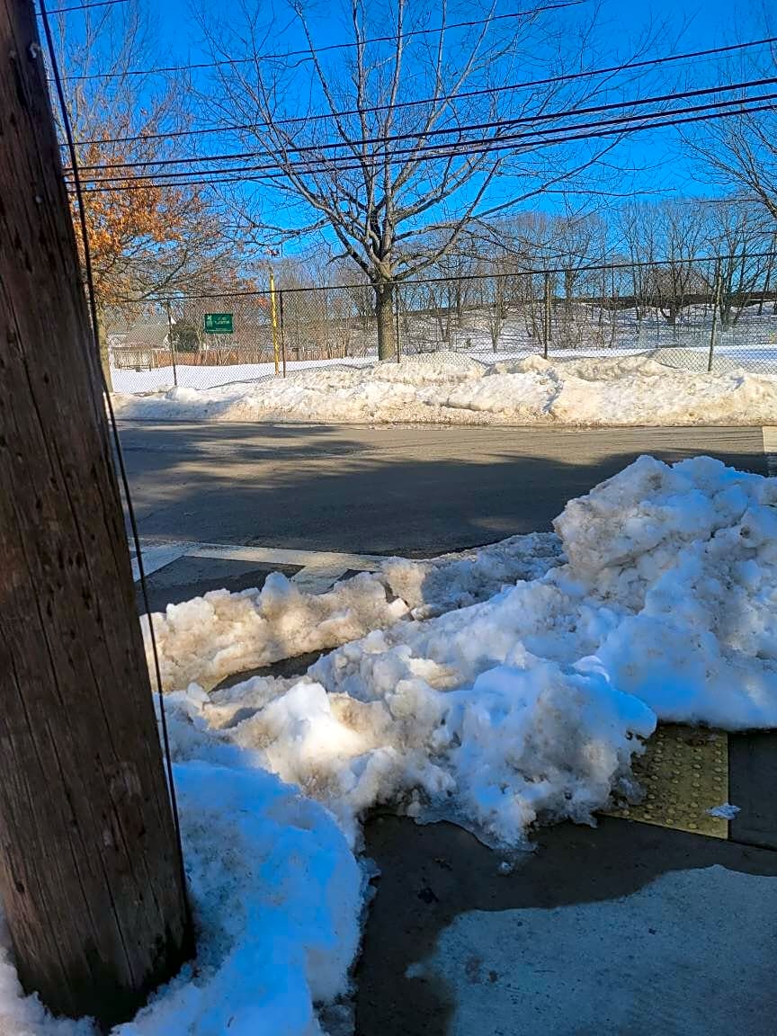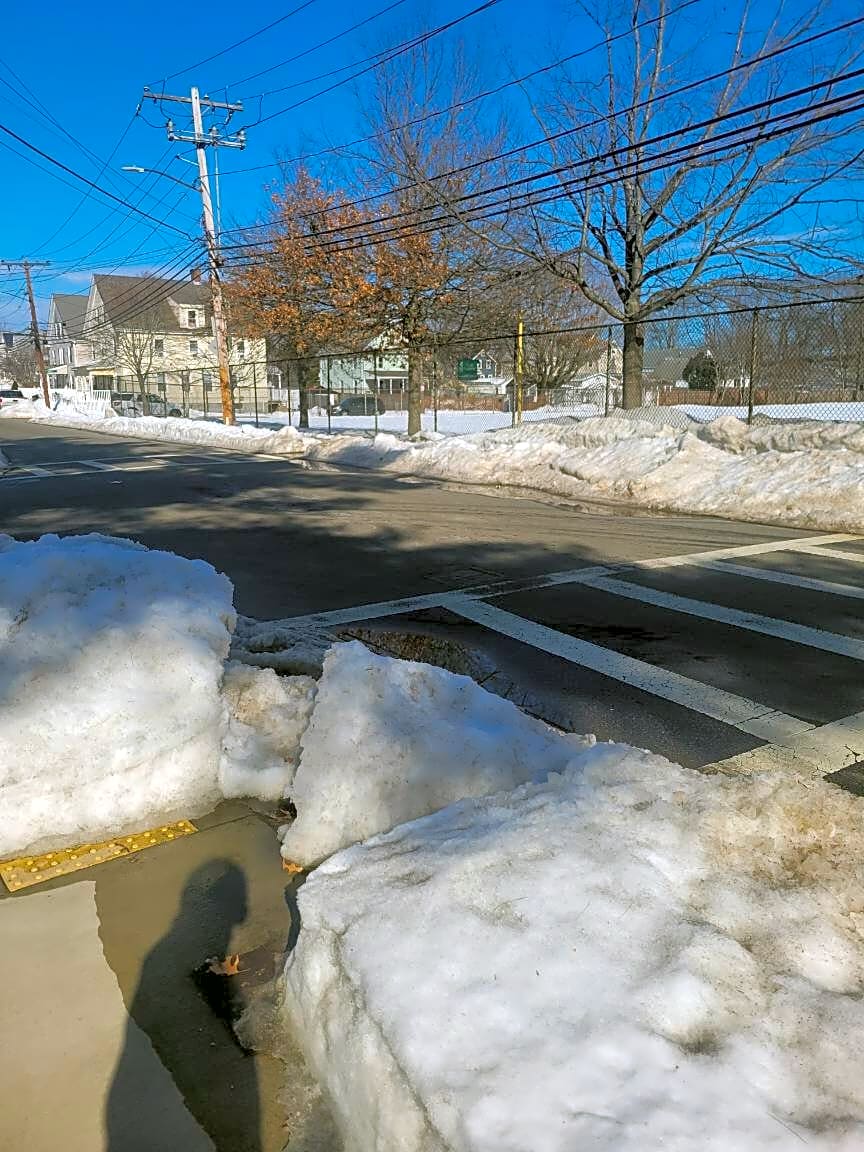 Intersection Of Corinth St And Belgrade Ave, Roslindale, MaSnow blocking crosswalk entrance