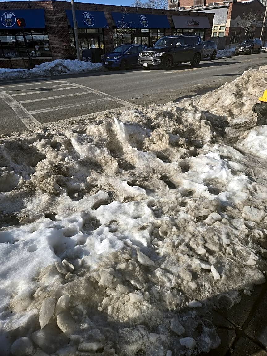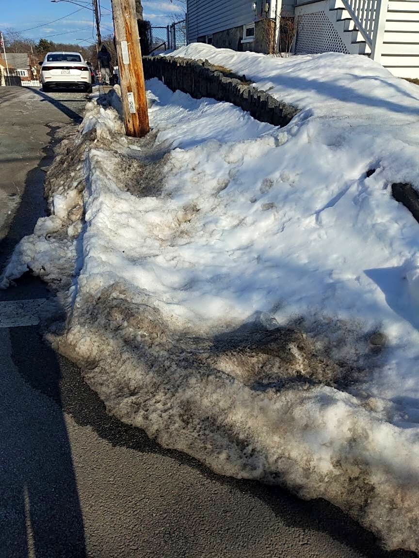 Intersection Of Albion St And Beacon St, Hyde Park, MaWalk way still hasn’t been shoveled! It’s been 5 days now past city law!