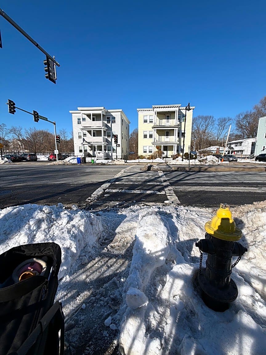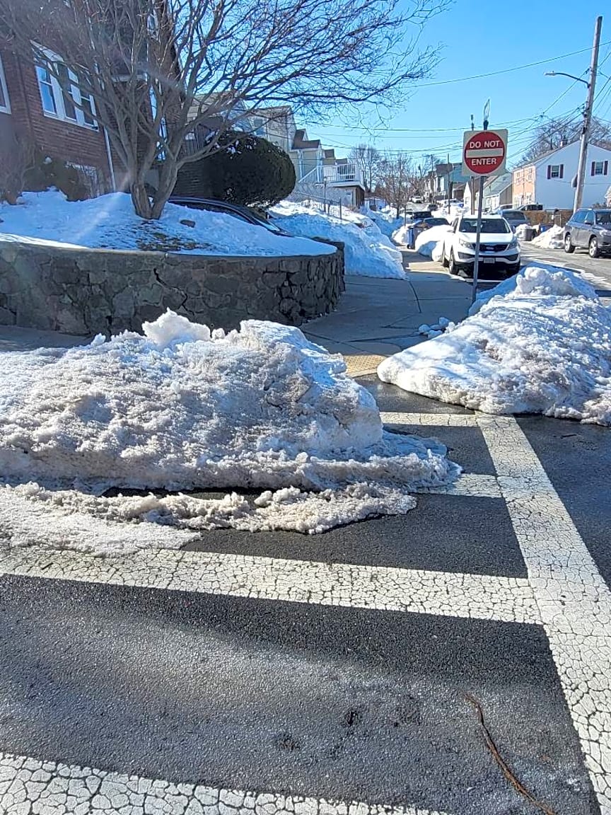 Intersection Of Howard Ave And Wayland St, Dorchester, MaCrosswalk blocked by snow bank