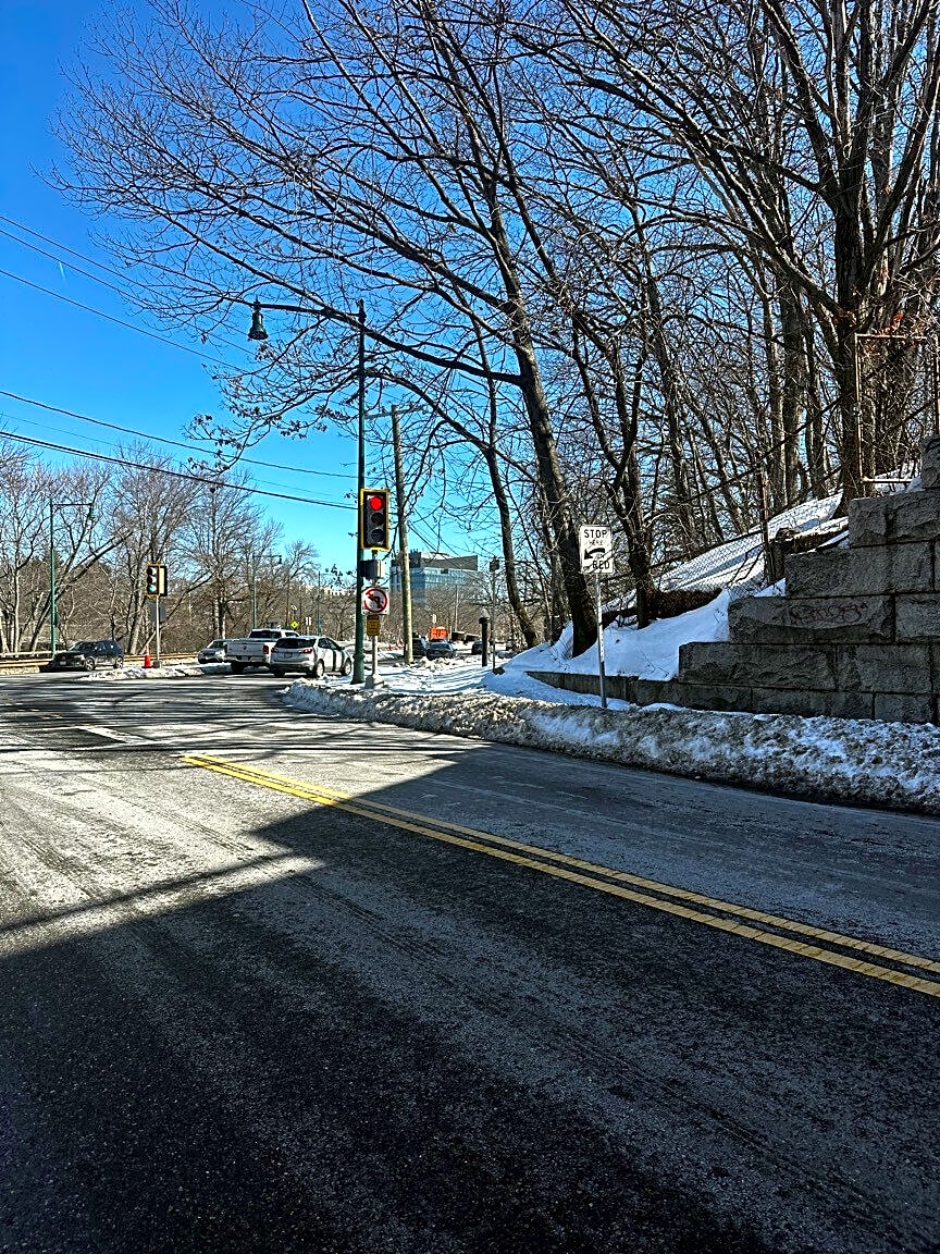Intersection Of Arcola St And Day St, Jamaica Plain, MaSidewalk and corner of street Crossing not shoveled by this park