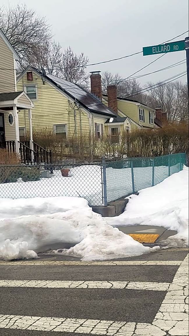 Intersection Of Edwardson St And Lewiston St, Hyde Park, MaSidewalks and Ramp not shoveled