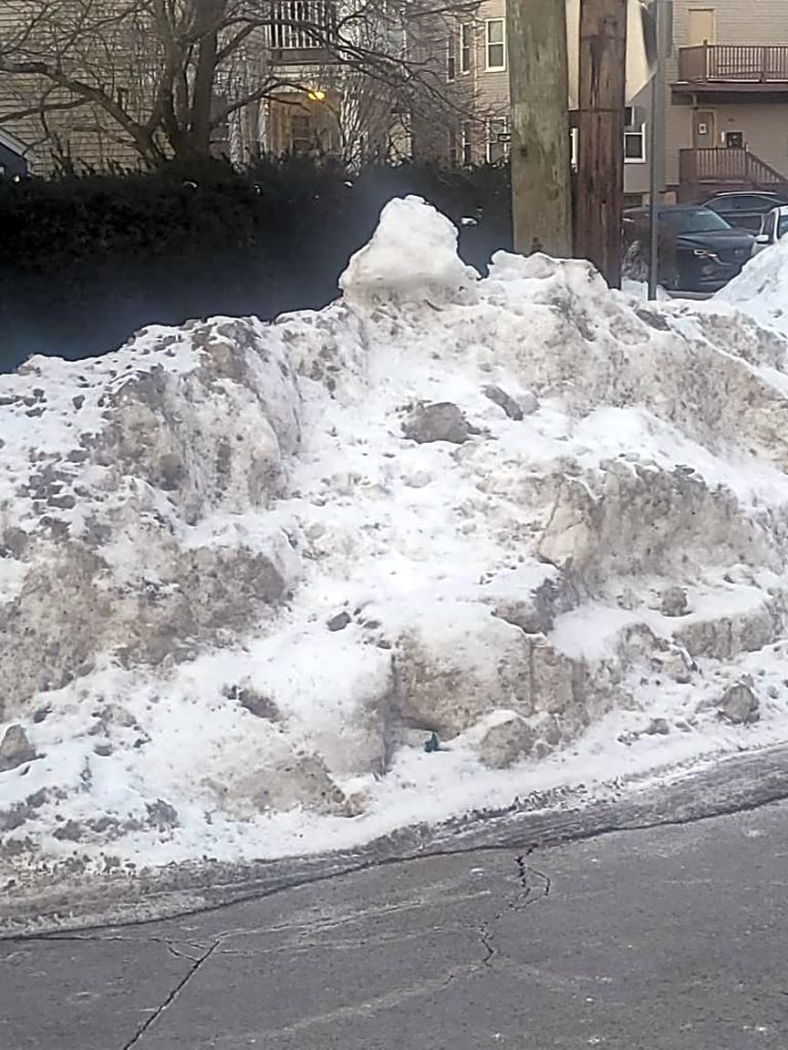 Intersection Of Leslie St And Dix St, Dorchester, MaBig mound of snow on the corner. It’s hard to see around it and cars have a hard time making the turn.