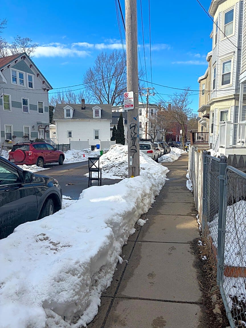 163 Boylston St, Jamaica Plain, Ma, 02130Space savers - people still saving spaces long after last week’s storm. We need these spaces to be open so we can pick up our kids from school!