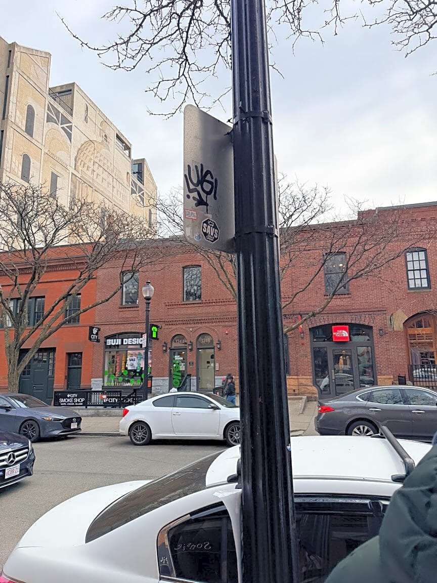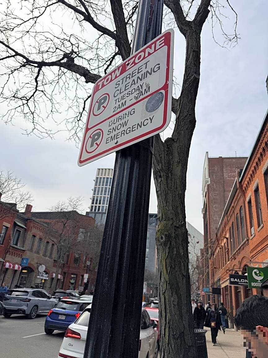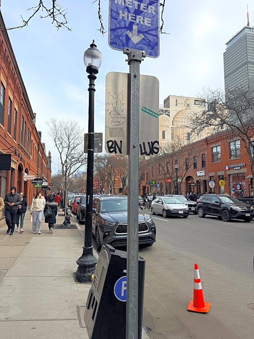 323 327 Newbury St, Boston, Ma, 02115Graffiti front and back of tow zone sign