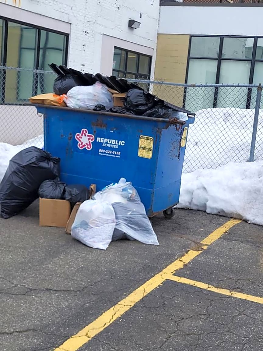 1799 Centre St, West Roxbury, Ma, 02132What is the nature of the problem: [There is an Overflowing dumpster in the rear of the Building. Residents have complained to Management and as of today (03/10/2026)nothing has been done about it.]
