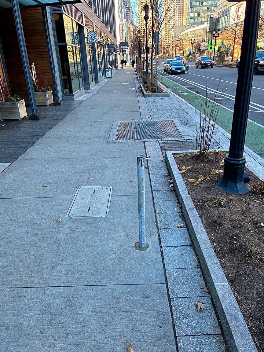 79 Seaport Blvd, Boston, Ma, 02210Pole installed in middle of walk way