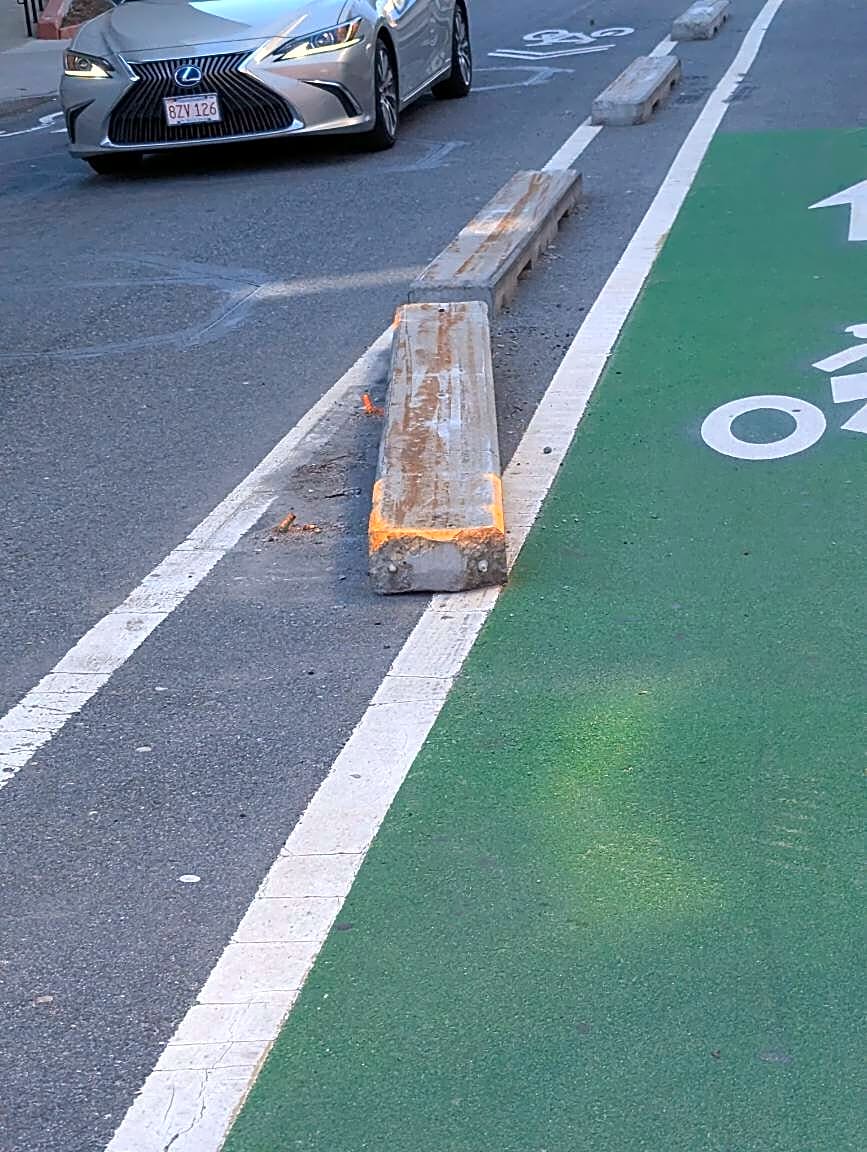 757 Ruggles St, Mission Hill, Ma, 02120Concrete divider pushed into bike lane