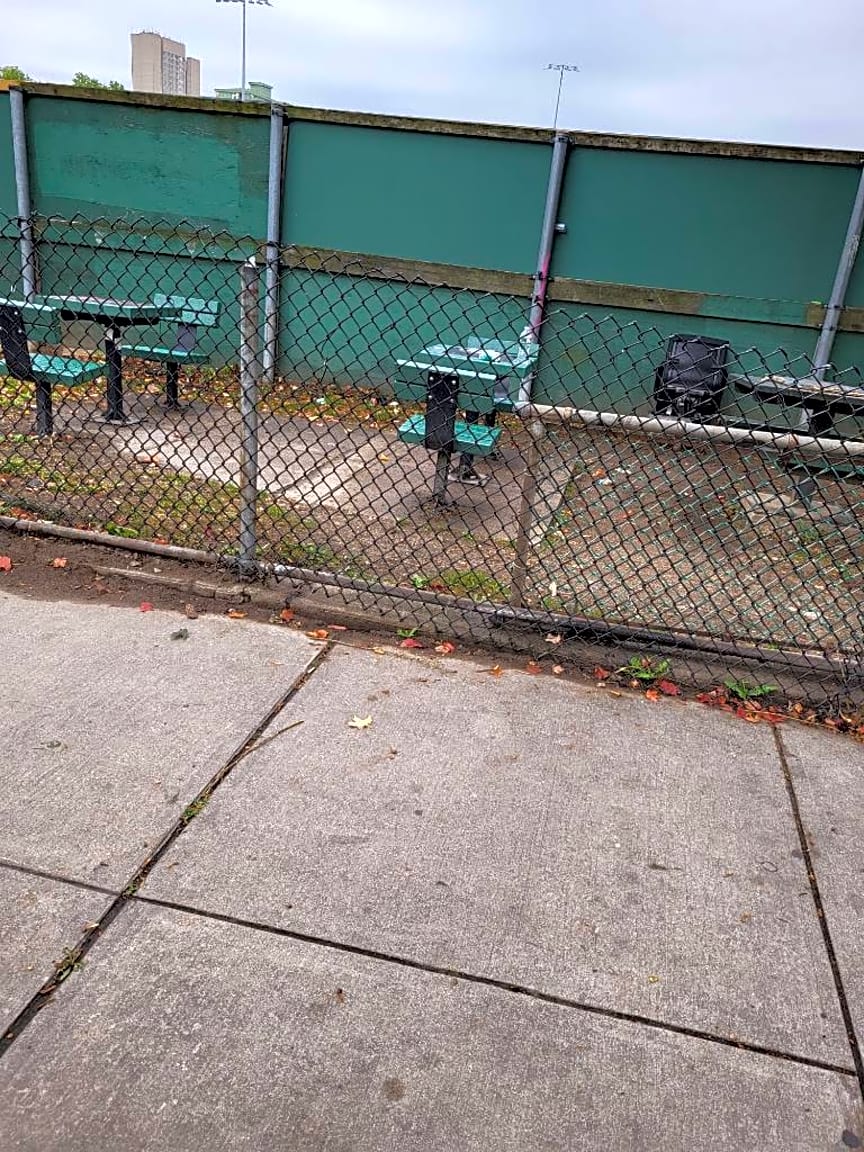 Intersection Of Shawmut Ave And Hammond St, Mission Hill, MaCLOSED #101006299834Resolved. Remove the bench and tables.