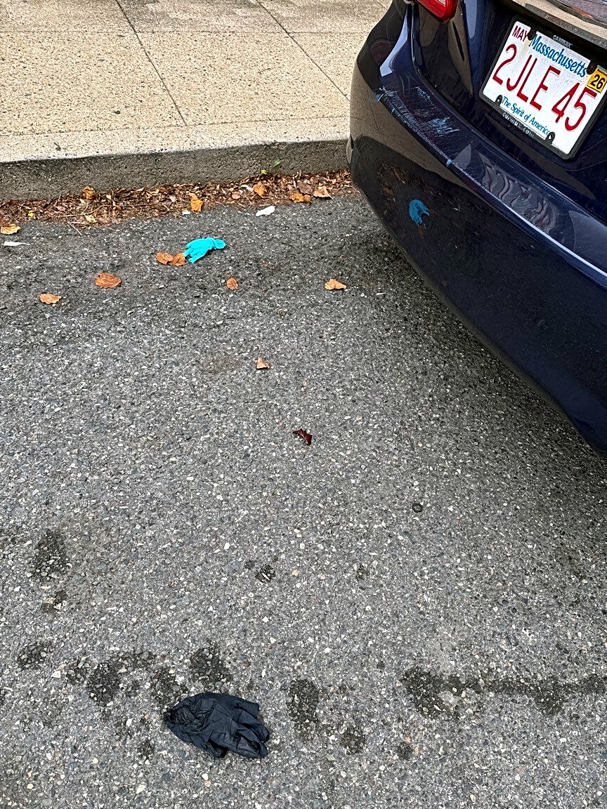 103 W Broadway , South Boston, Ma, 02127The EMS trash bin located behind or beside this facility is a standard unsecured trash can and is regularly overflowing. It contains used medical gloves and similar waste from patient care. As seen in attached photos, gloves have blown into the adjacent public roadway and sidewalk, including under parked vehicles and construction equipment. The bin is not labeled, sealed, protected, or intended for biohazard containment. Per 105 CMR 480.000 (Massachusetts State Sanitary Code, Chapter VIII), medical materials contaminated by blood or bodily fluids or used during patient care must be collected in sealed, leak-proof, tear-resistant red/orange containers clearly labeled as biohazard. Storing such waste in an ordinary trash receptacle accessible to the public and exposed to the environment is noncompliant and presents a public health risk. Request: Please inspect the location and ensure the EMS station follows proper regulated medical waste procedures and containment. Request corrective action to prevent ongoing contamination of public areas. Supporting Details: • Address from onsite signage: 101 W Broadway, South Boston, MA 02127 • Medical gloves visible on pavement and under vehicles • Trash can lacks lid (often left off) and cannot contain waste during wind • Photos attached