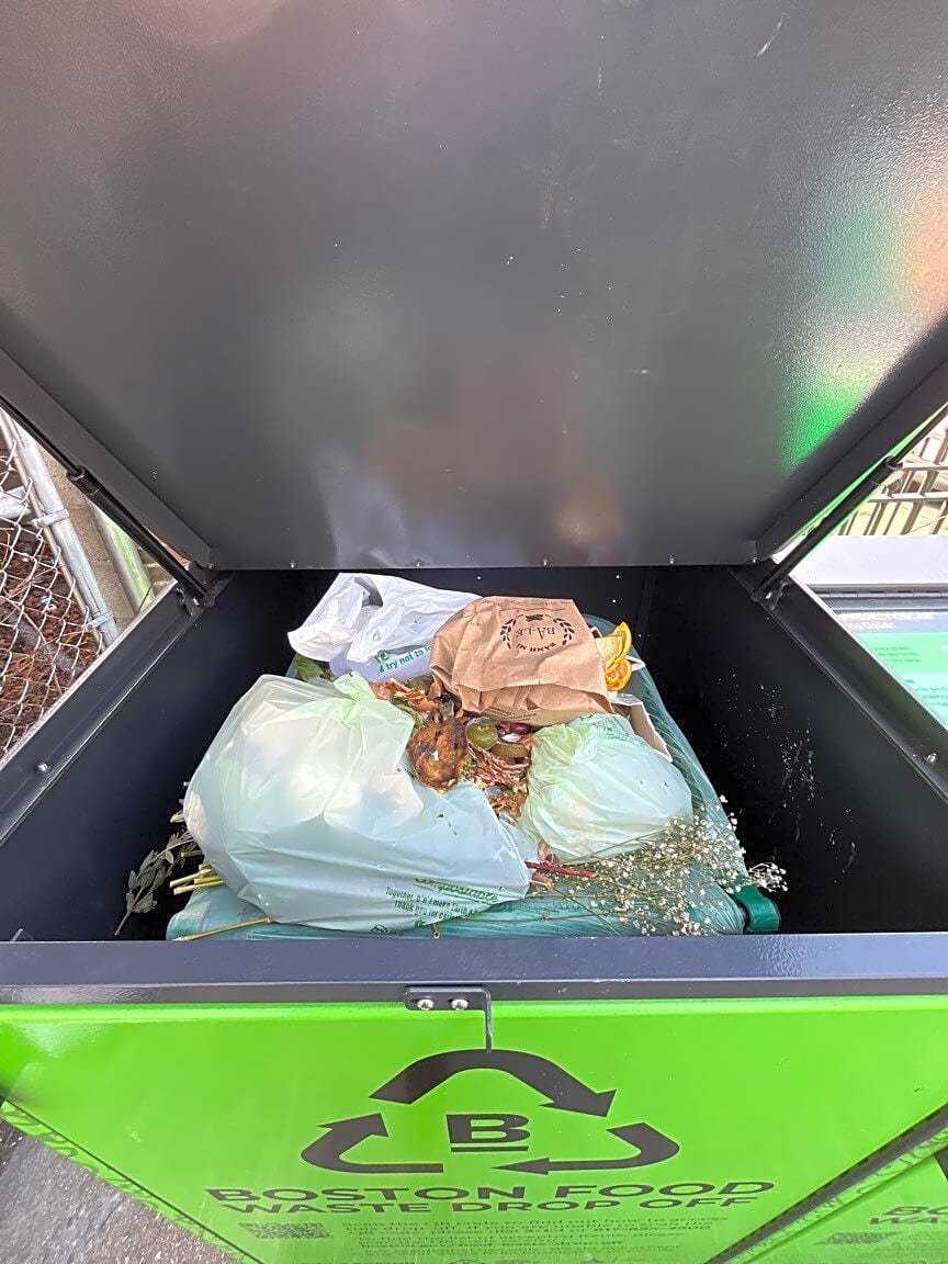 690 Washington St, Dorchester, Ma, 02124The Project Oscar food waste drop off bins at the Codman Square library are over flowing
