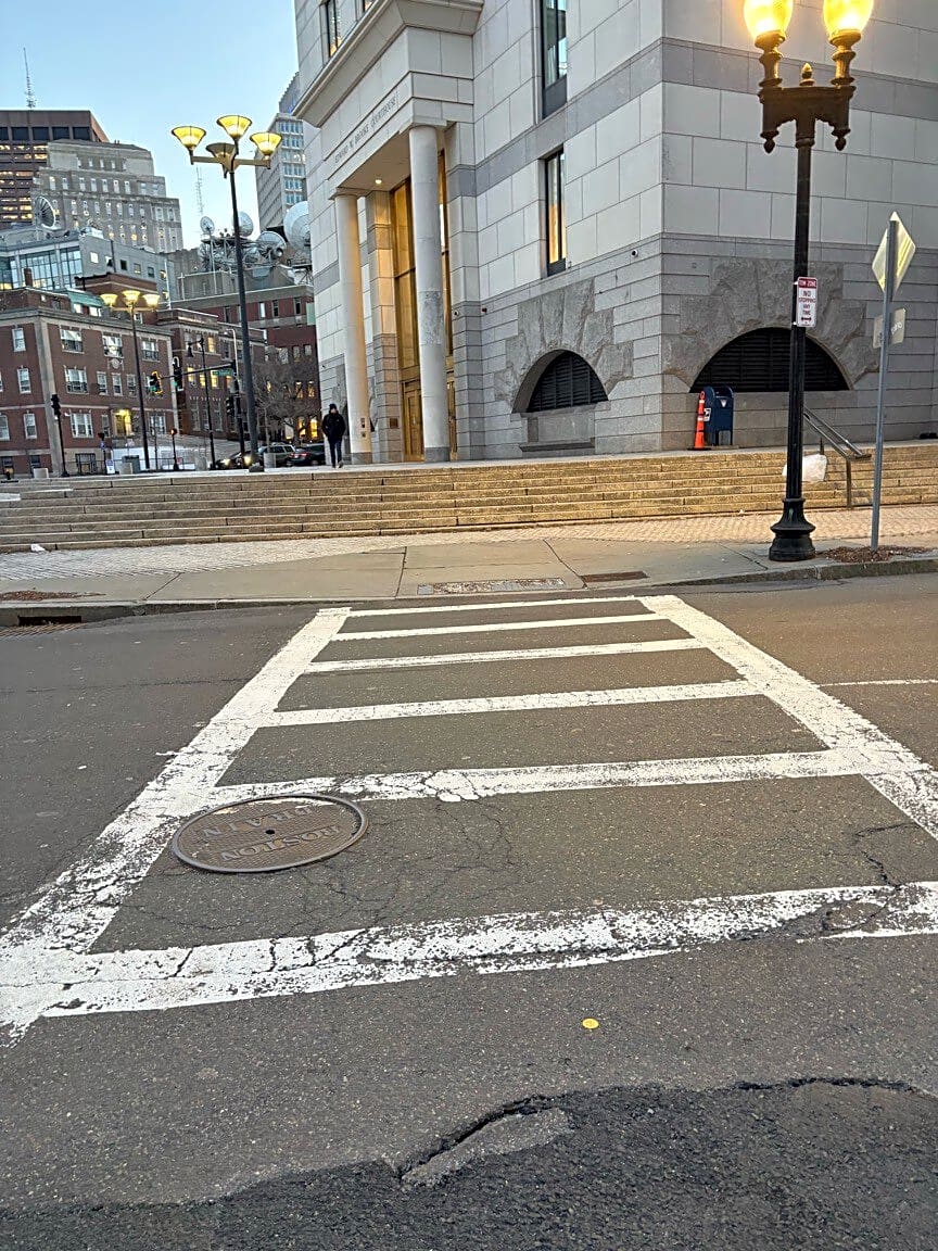 Intersection Of Merrimac St And Portland St, Boston, MaPEDESTRIAN CROSS WALK ILLUMINATED SIGNS. CARS & DUCKBOATS FAIL TO STOP AT CROSSWALK FOR PEDESTRIANS ON MERRIMACK STREET IN FRONT OF EDWARD BROOKE COURTHOUSE BMC CENTRAL. EVEN THOUGH THERE IS A MARKED CROSSWALK AND SIGNS.