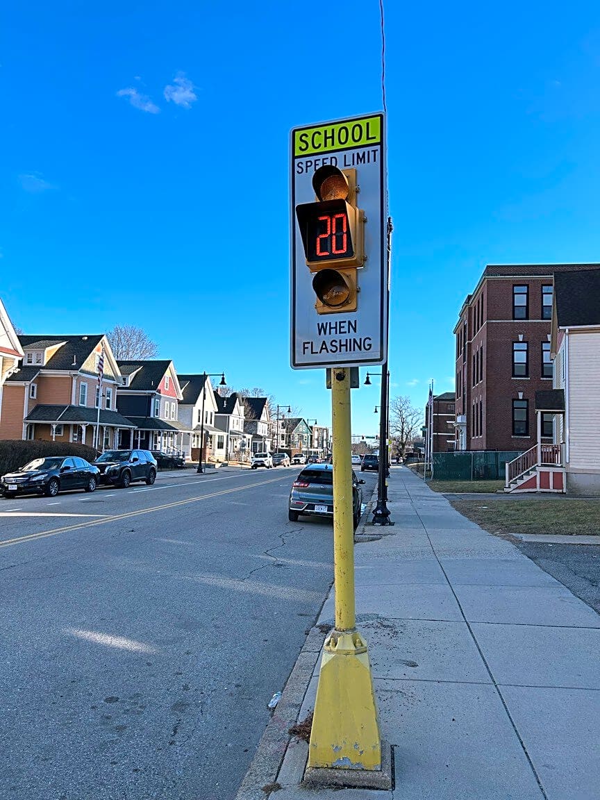 Intersection Of Southwick St And Neponset Ave, Dorchester, MaMis-timed school zone sign adjacent to 221 Neponset Ave, please check. Lights for dismissal but not for a.m. drop-off. School starts at 7:30 a.m.