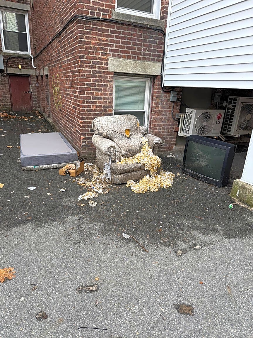 168 Allston St, Allston, Ma, 02134Chair continues to be chewed up by rats. Trash was dumped illegally before my 10/1 move in and is still here SIX MONTHS LATER despite several citations. Please help.