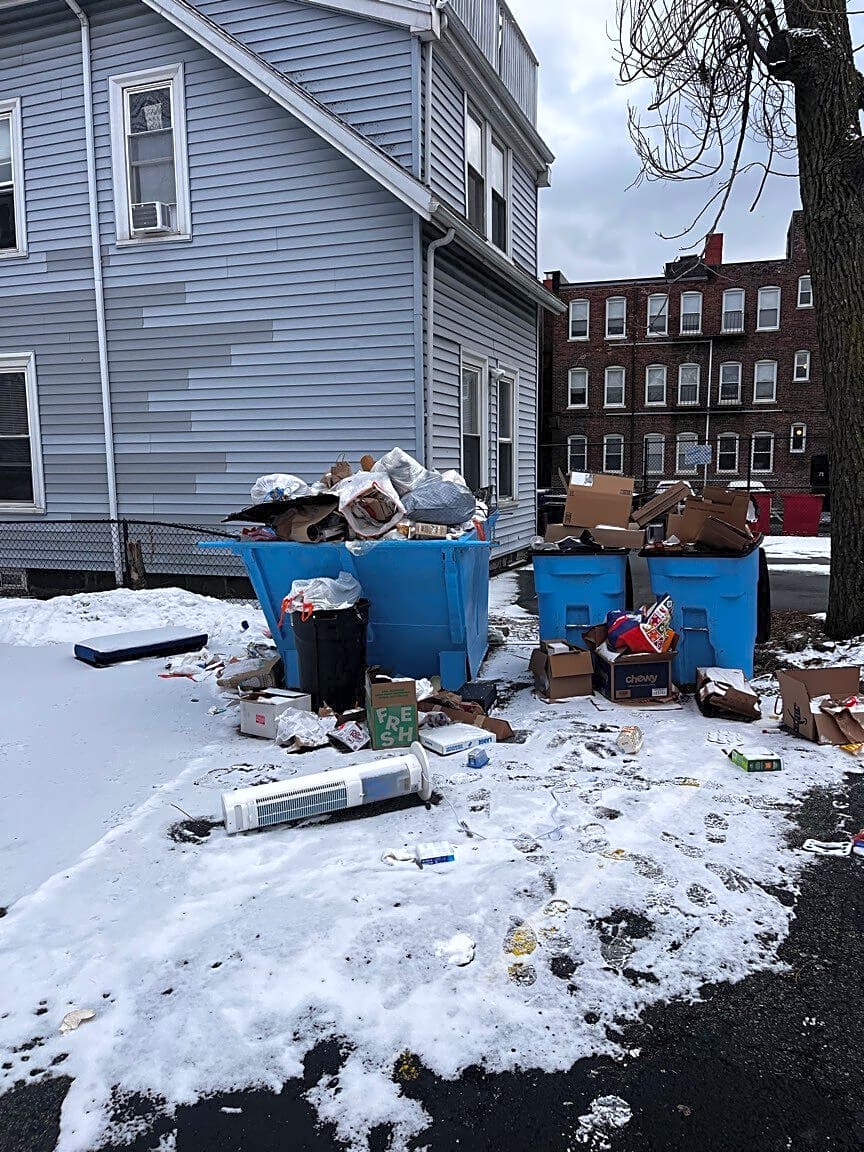47 Gardner St, Allston, Ma, 0213447 Gardner St, Allston. Trash removal has not taken place in nearly 2 weeks. Trash is piling up and overflowing, leading to trash being blown around the neighborhood from wind.