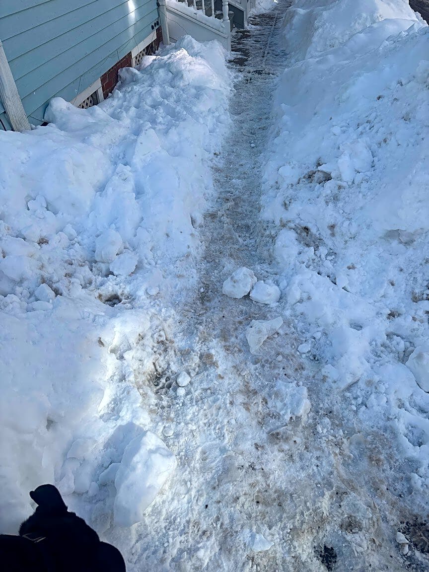 119 Pembroke St, Roxbury, Ma, 02118Ice melt in the alley between Pembroke & West Brookline Streets. At first I thought it was sand which I have my snow shovelers sprinkle with PET FRIENDLY ice melt as I have a 10 year old and two 2 year old rescue puppies. In addition Trucked Up Pup at 83 Pembroke walk their four legged clients up Pembroke through the alley onto West Brookline. Unfortunately it is ice melt not sand! It is impossible to get boots on the puppies, when I tried, they wouldn't walk, my 10 year old, I have to pick up and carry. Throughout the storm the only place to walk was my alley, now we can't walk there either. With so many people with pets living in the South End it would be amazing if the City of Boston was more understanding and cooperative to at the least sprinkle sand as my shovel people do with my FIVE properties, front and rear!