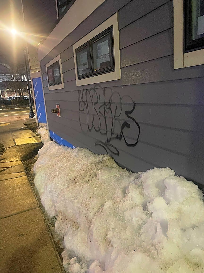 291 Brookline Ave, Boston, Ma, 02215Graffiti directly across the street from Emmanuel College Residence Hall on Brookline Ave.