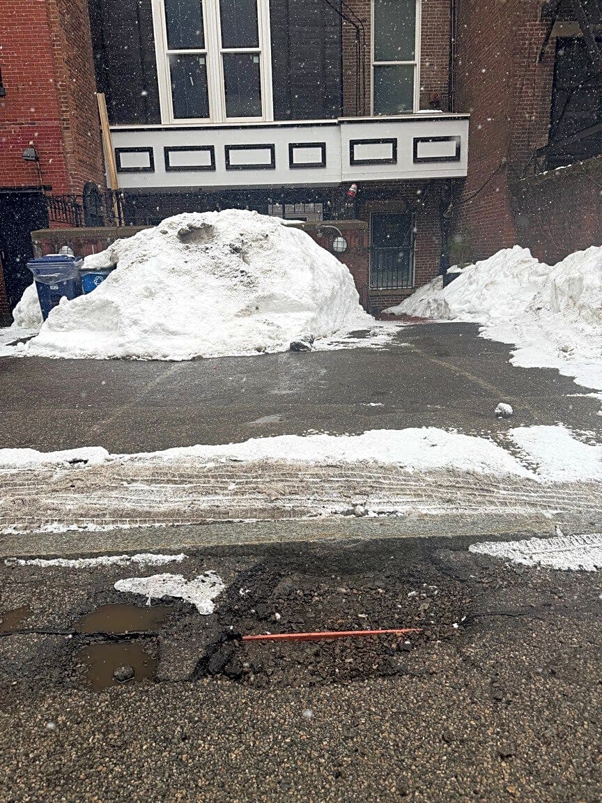 211 Beacon St, Boston, Ma, 02116Potholes in alley 419, one behind 105 Marlborough and the other behind 107 Marliborough
