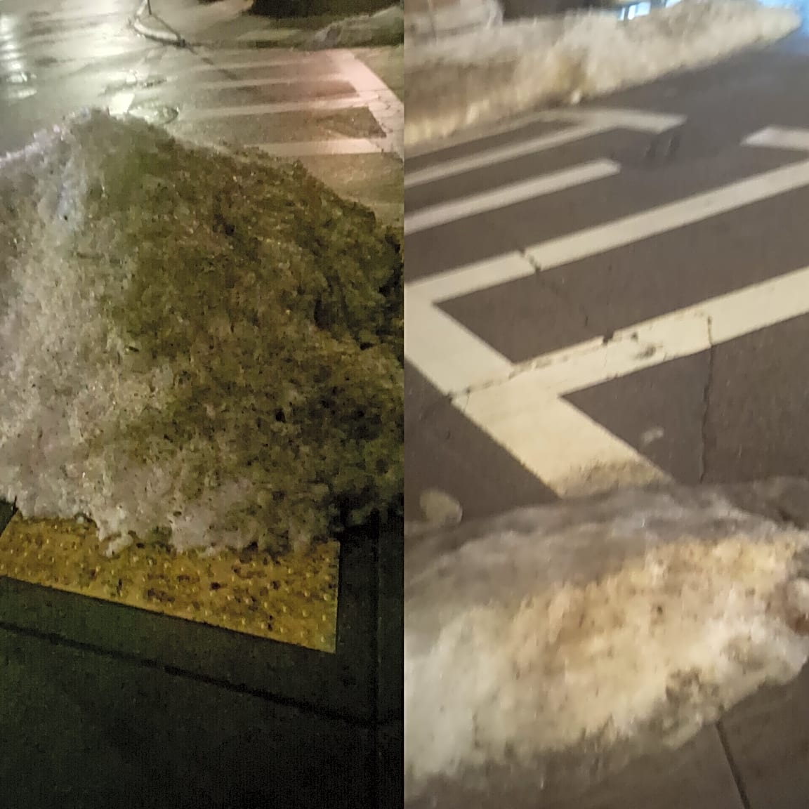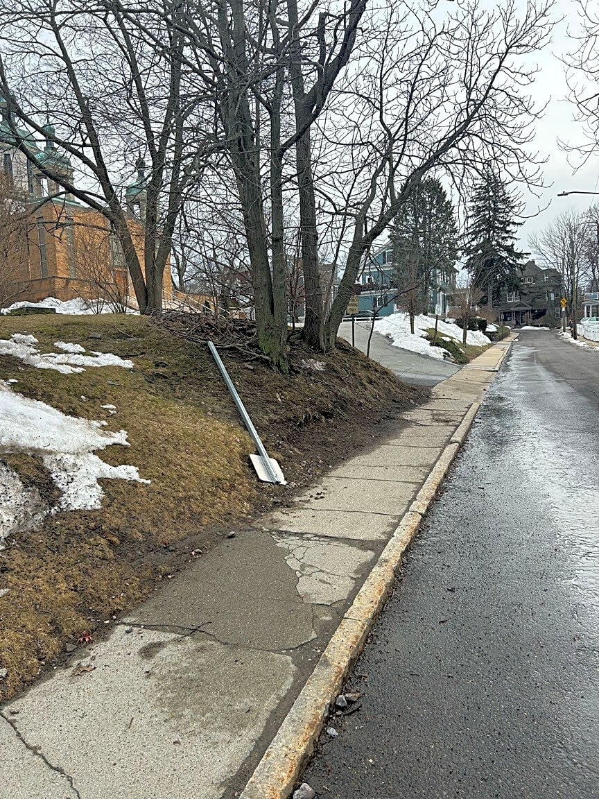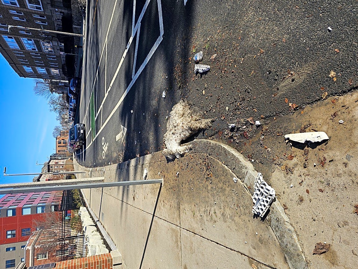 301 S Huntington Ave, Jamaica Plain, Ma, 02130This is the cities trash, it's everywhere, thousands of pieces. Is anyone going to clean it up? These are the bike lane parking pilons. We have a huge pile of pieces collected in our lawn here at Mount Pleasant Home for the aged. This is 301 S Huntington Ave. Someones going to get hurt. Never seen anything like this in 20+ years of taking care of the property. Obvi, they're all over the neighborhood, what's the plan, hope they evaporate/melt with the snow? Thank you, sorry for sarcasm, were just perplexed.