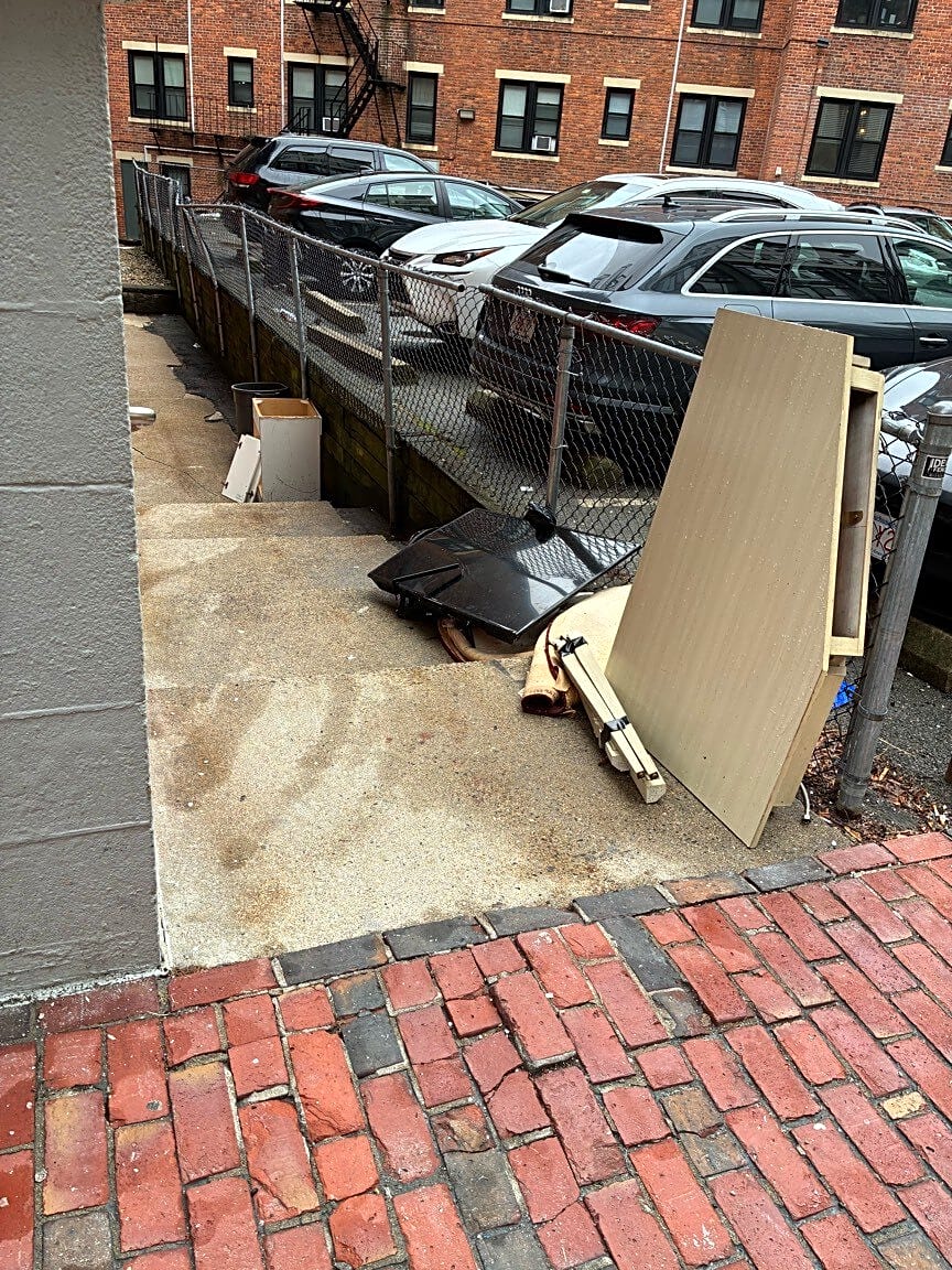 25 Edgerly Rd, Boston, Ma, 02115Trash dumped illegally at rental building. Adjacent to sidewalk. At rear of this Edgerly street address. Thanks.