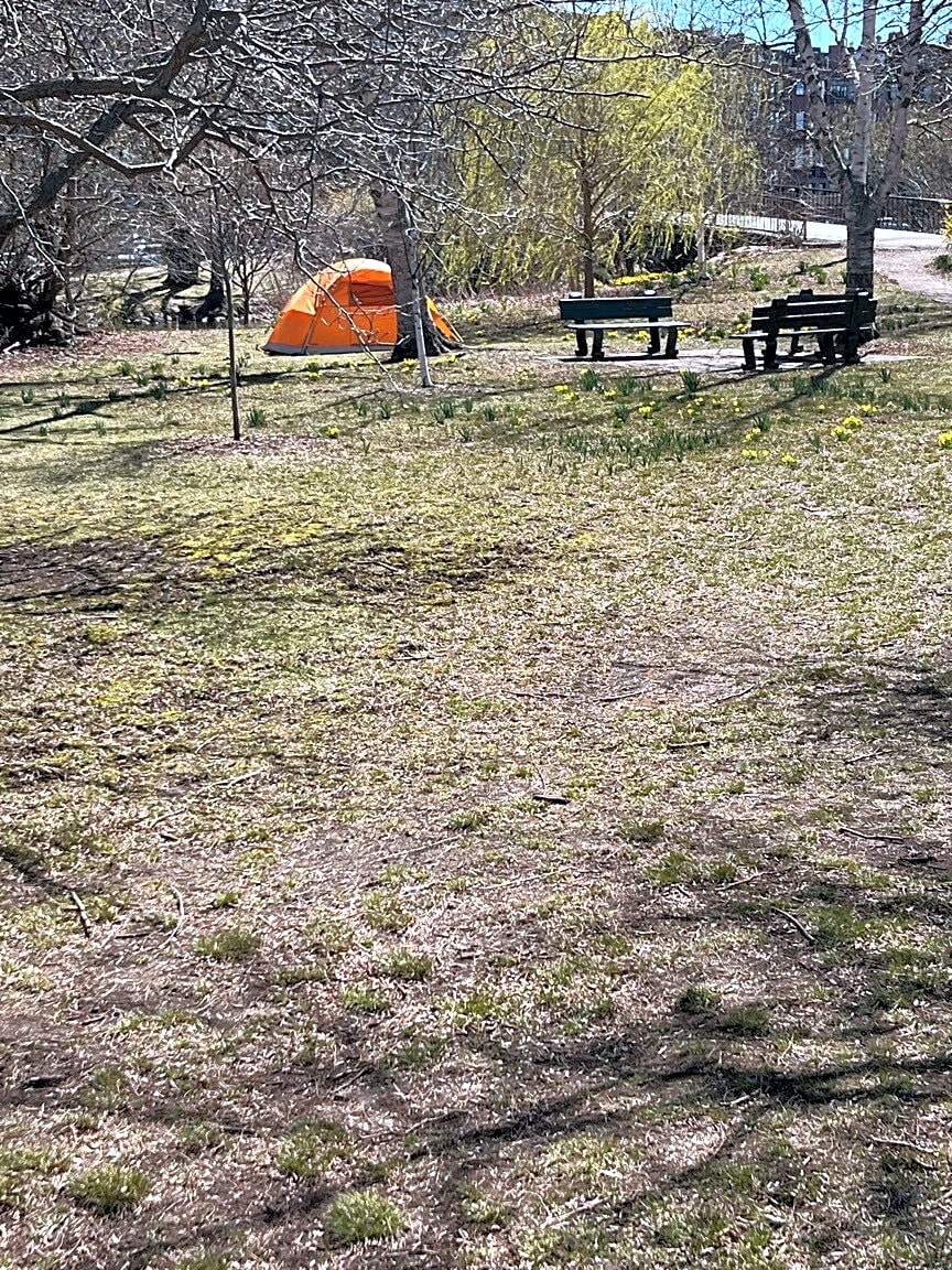 21 James J Storrow Memorial Dr, Boston, Ma, 02116Homeless encampment, looks like drug use out in the open on the Esplanade. Do your job Boston and remove.